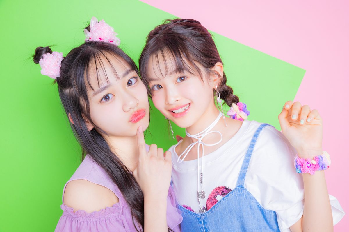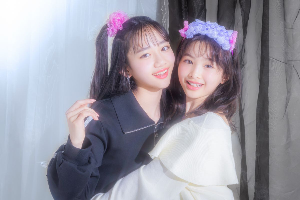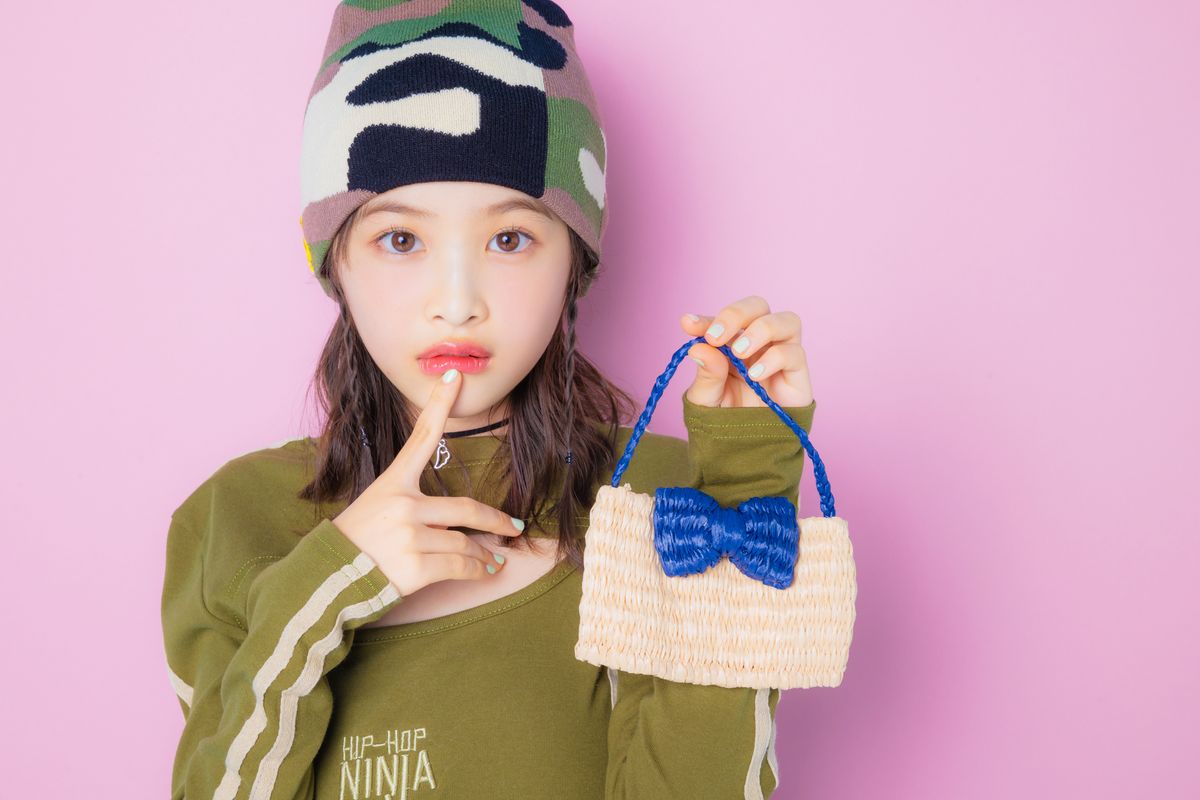 ありす☆トップス¥3380/URBAN CHERRY ミニスカート¥4990/ピンク ラテ ニット帽¥2197/SPINNS チョーカー¥660/パリスキッズ原宿本店 ちひな☆スウェット¥3990/ピンク ラテ イヤリング¥550/パリスキッズ原宿本店