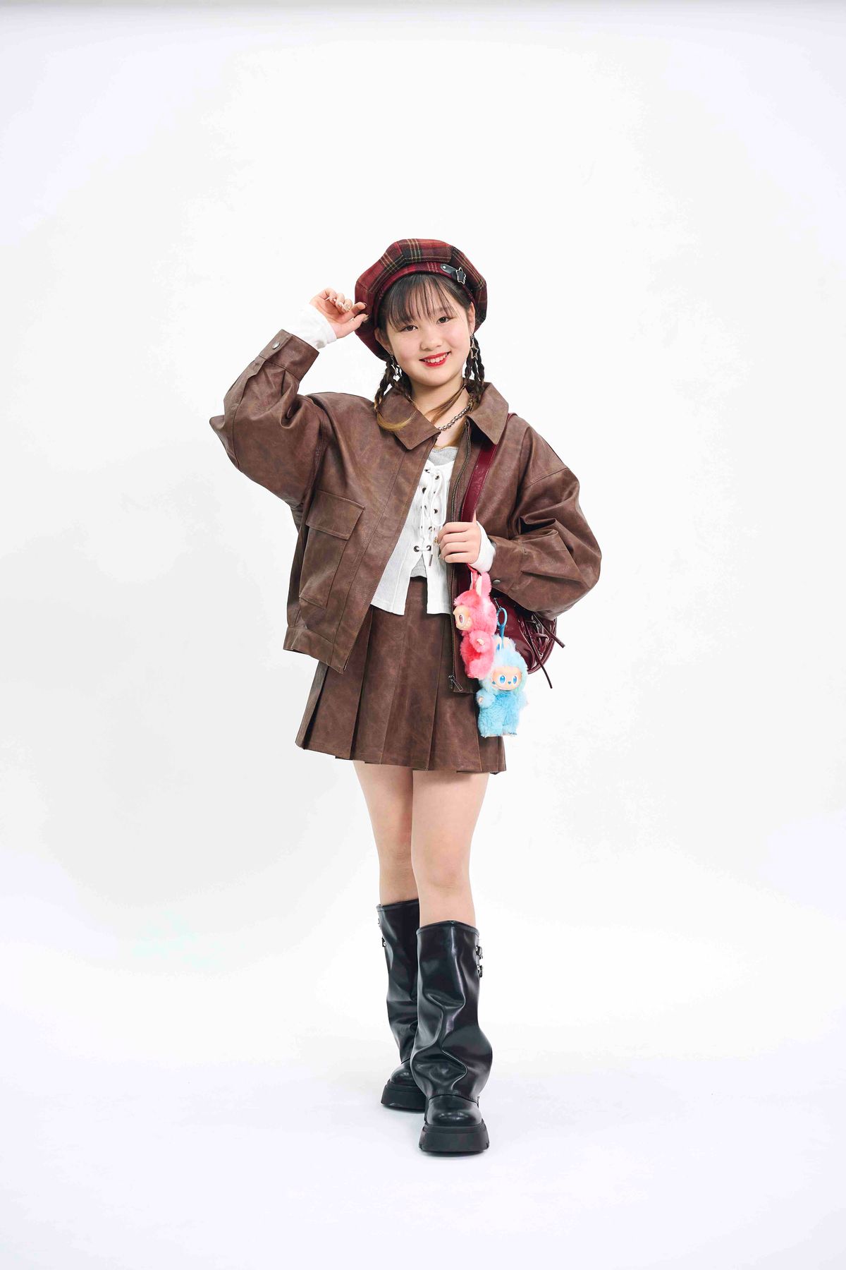 レザー風セットアップで旬なブラウンコーデに。足もとのカバーブーツで平成ぎゃるみをプラス!
