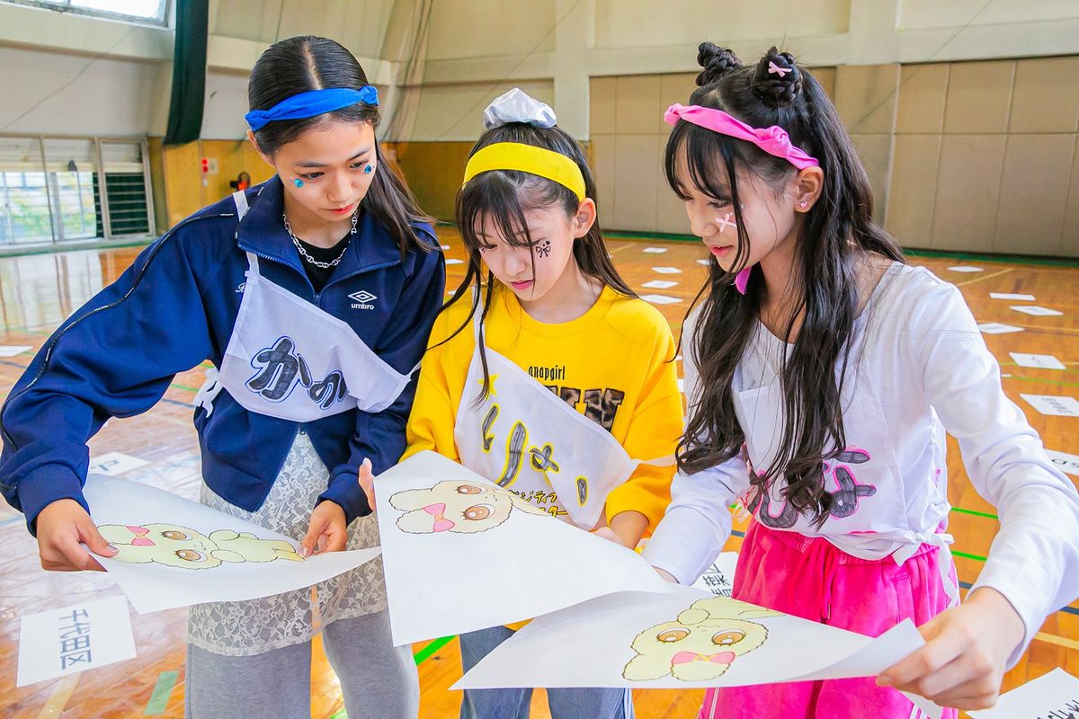 リボンの位置や色など、びみょうなちがいに混乱中のかのん、りむ、ちひな。あのー、一応3人で対決中なんですが(笑)。