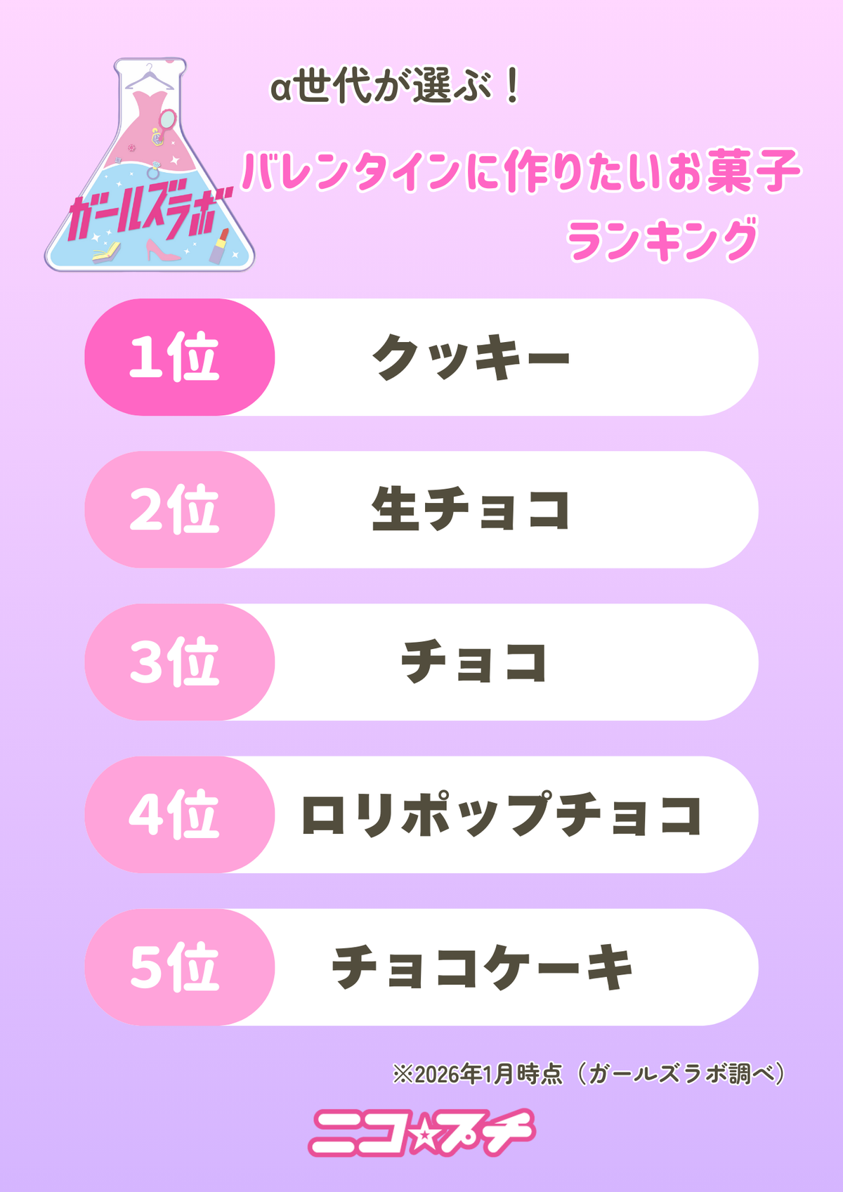 2月14日はバレンタインデー! α世代のバレンタイン事情、気になる!「バレンタインに作りたいお菓子」ランキング