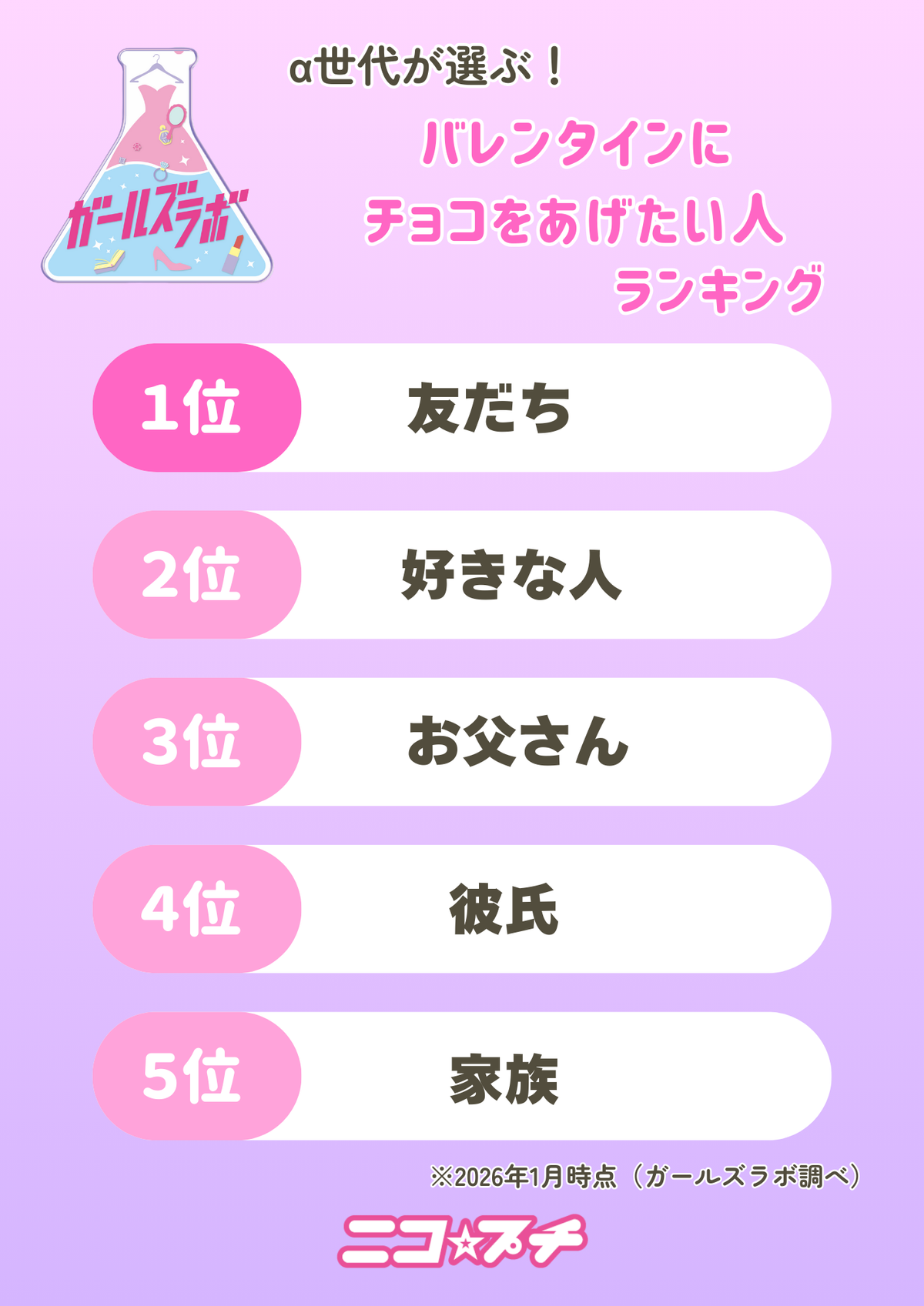 「バレンタインにチョコをあげたい人」ランキング