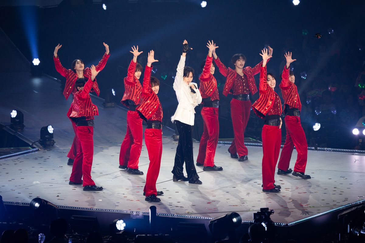 ケンティーゆかりのアーティストが毎公演シークレットでゲスト出演するコーナーには、WEST.の重岡大毅くん、Snow Manの岩本照くんがシークレット出演!! YouTubeでのコラボで仲良しぶりが知られる“けんしげひー”がステージに揃って、会場の歓声がだいばくはつ! 3人が過去に共演した映画の主題歌だった「BAD BOYS」をロックポーズで大あばれしながら歌う仲むつまじい姿から、かたーい絆が感じられたよ。ラスト曲は、「JUST KENTY☆」。「U:nity楽しかった? 有明楽しかったですか?」とコール&レスポンスで最高潮の声だしタイム。「有明U:nityありがとうございました! 1日最高の思い出になりましたか? ちゃんとみんなの心の記憶に残りましたか? この最高に輝くしゅんかん、忘れませんか? その声、ずっと胸にひめててください。俺は星になります。じゃあね!」と星の機構に乗って、ステージを去ったケンティ。アンコールでは「世界中にこの瞬間を届けてほしい」と「IDOLIC」でスマホ撮影O.Kと呼びかけ、火花の特効がふきあがる中でパフォーマンス。最後までU:nityとの愛を確かめ合ったあつーいステージに会場はハッピーな空気に!!