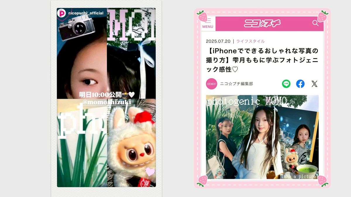 もうひとつは、以前に『モモ🍑のフォトジェニック特集』をニコ⭐プチネットでさせていただいたんですが、『モモ🍑流フォトジェニック第2弾』❣️で、ティーンに流行りの今どきポーズとコーデを紹介して、みんなの参考にしてもらいたい な🫧