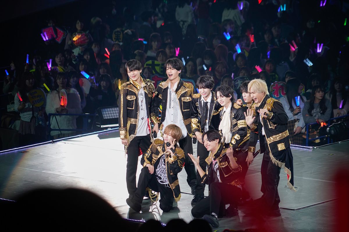 終盤には、先輩グループ達の名曲メドレーをたっぷりひろう! 関西ジュニアの嶋崎くんの掛け声でスタートしたWEST.の「ええじゃないか」ではダイア、ソウ、ライも参戦! 9名のジュニアでわちゃわちゃ楽しくポーズをキメていたよ☆