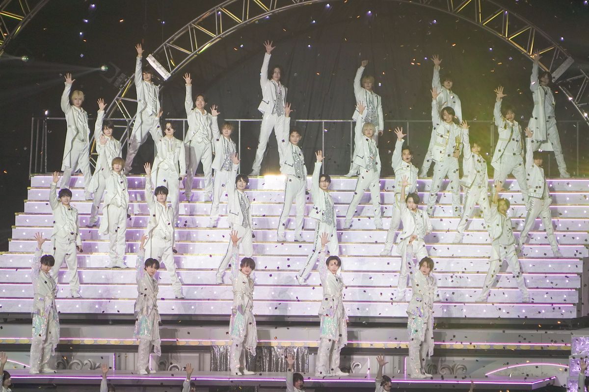 そして、最後はジュニア77名全員が出演しV6の「Can do! Can go!」をひろう! 世代を超えて歌い継がれる、ジュニアの"原点"とも言える楽曲を白Tシャツに白パンツの衣しょうを着て、みんなで歌ったのでした。先輩との夢のステージ共演でドキドキだったダイア、ソウ、ライの3人も無事大かつやく!新しいスターの誕生、そのはじまり――。そんな予感と期待にあふれたコンサートは、めちゃくちゃハッピーな空間となりました☆