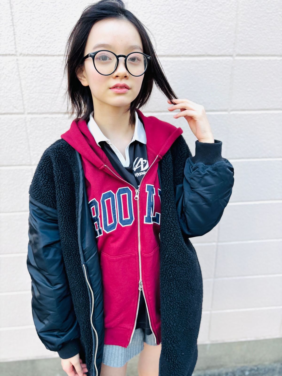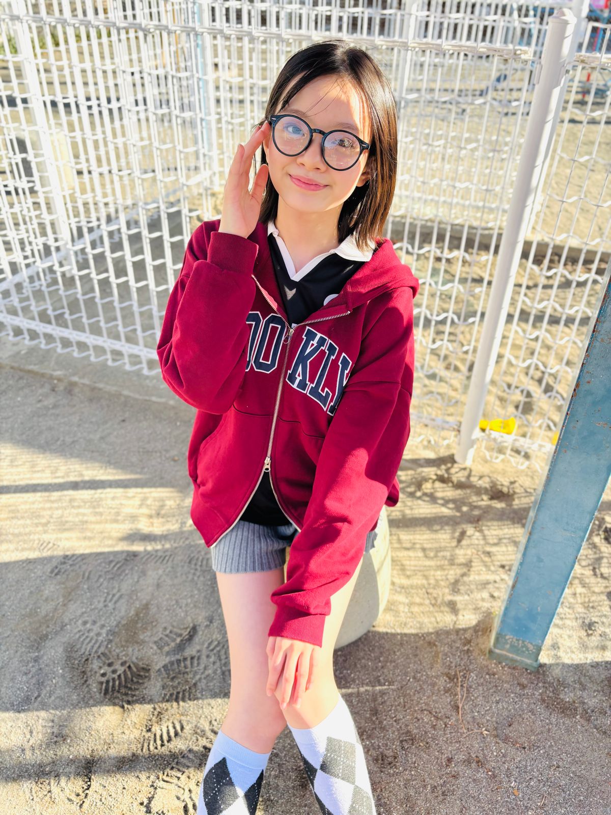 三つ目は赤いパーカー❤️とだてメガネ👓