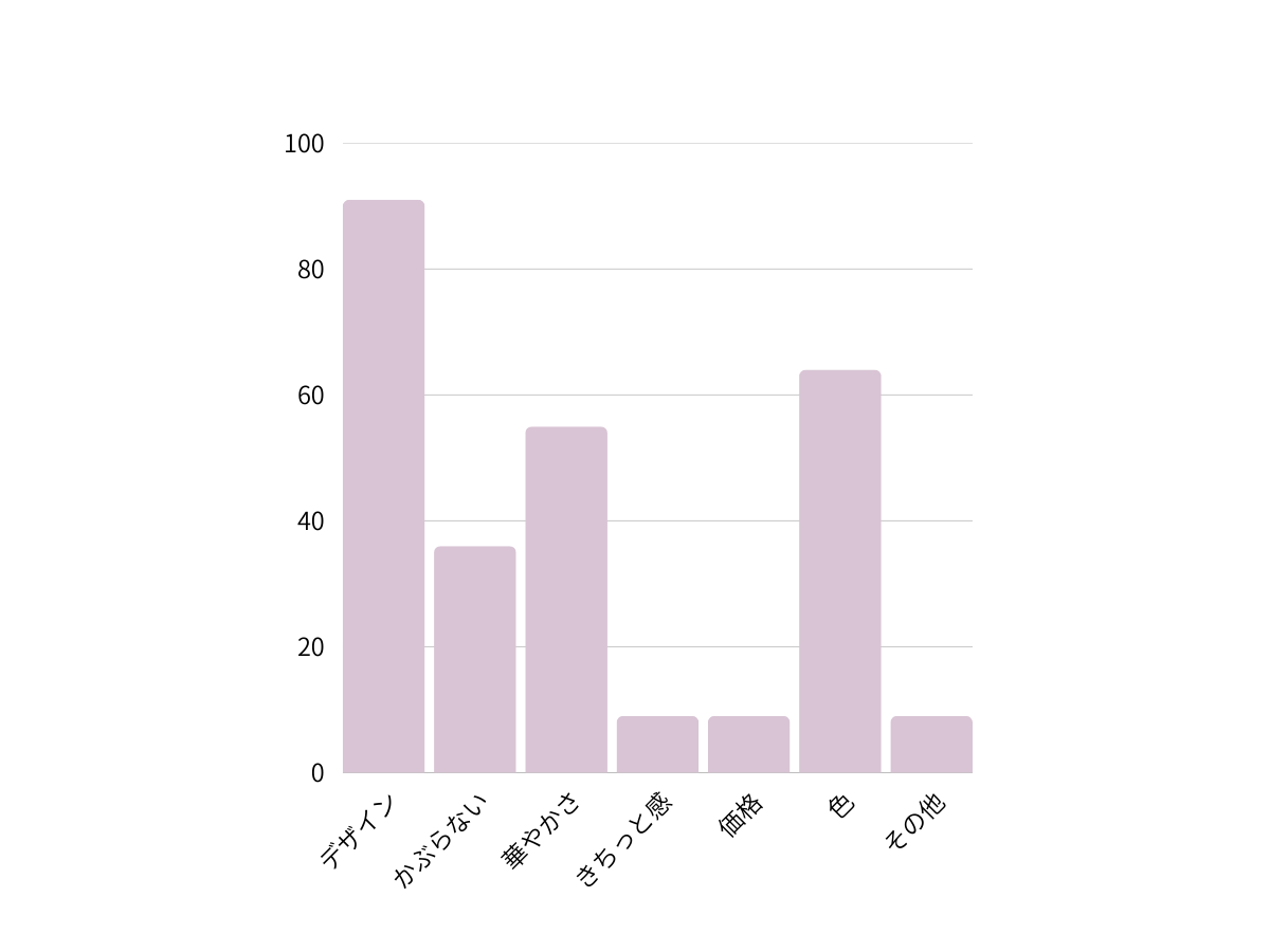 袴派は、フォーマル以上に「デザインが好みか」を重視する傾向がありました。また、「色」を選ぶ人も6割超え。袴ならではのこだわりポイントといえそうです。「華やかさ」も半数以上で、卒業式を特別な日として楽しみたい気持ちが伝わってきます。