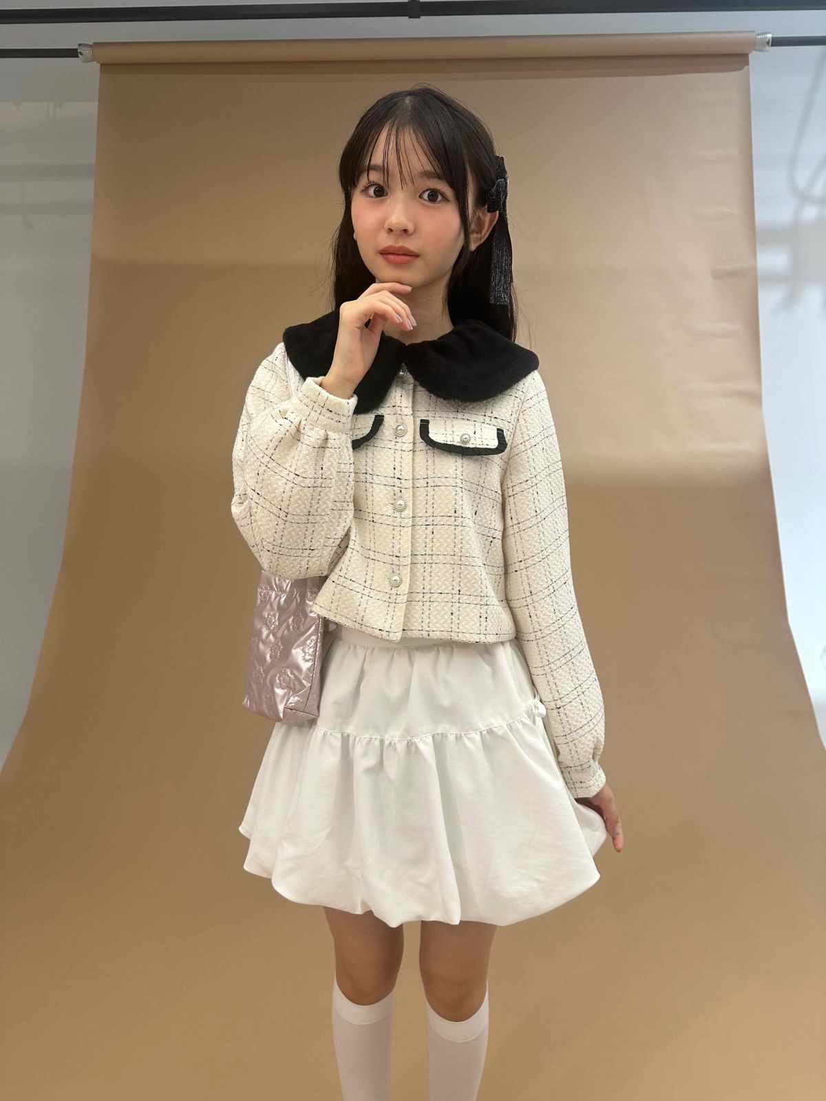 シンプルな白マフラーも、ホノカの手にかかればコーデの主役に!