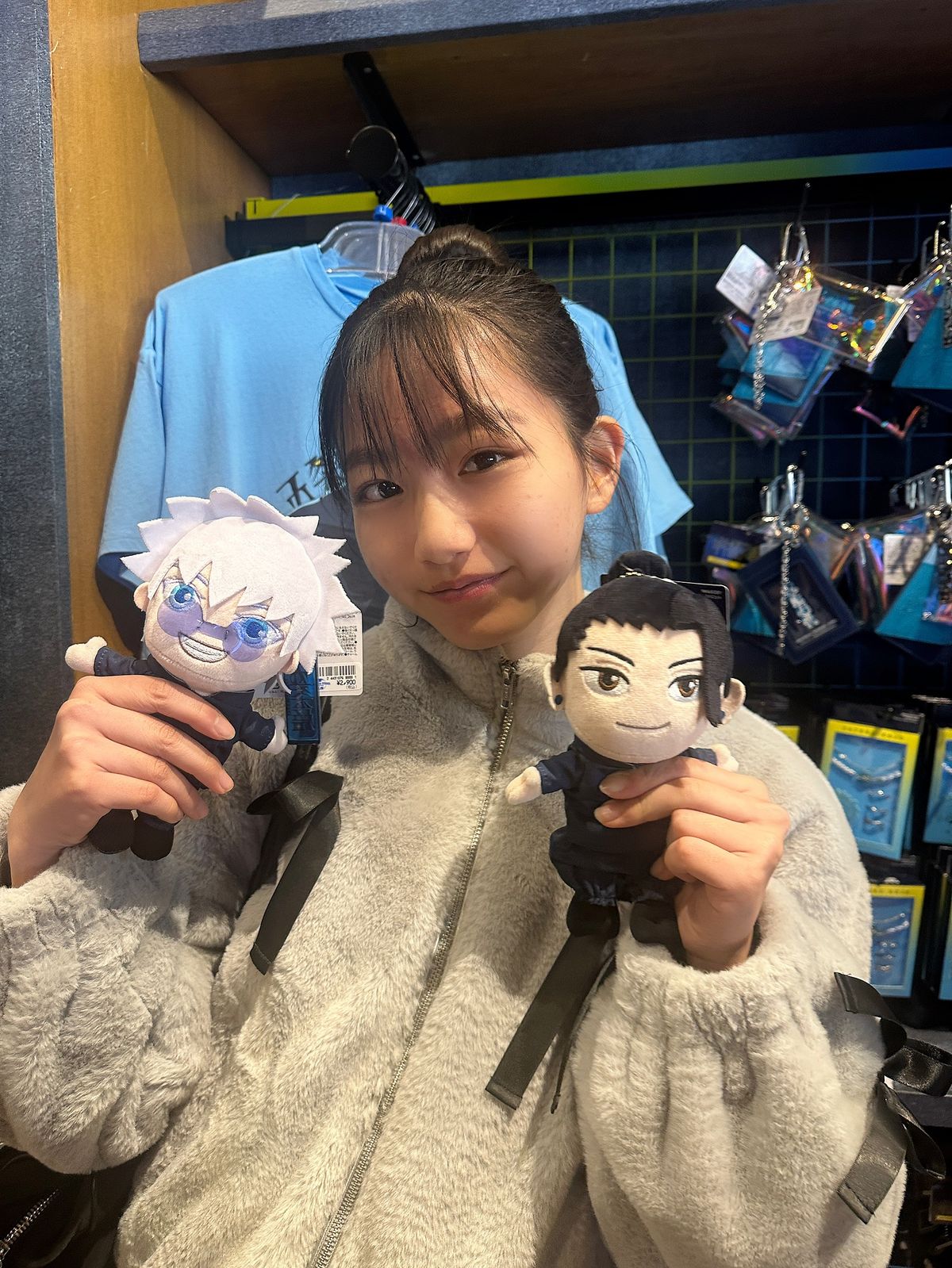 『呪術廻戦・ザ・リアル 4-D ~廻る時計台~』のストーリ内でのカギとなる、高専時代の五条と夏油のぬいぐるみを発見! とってもかわいいー! 五条はサングラスバージョンで、かっこよさがあふれてる♡