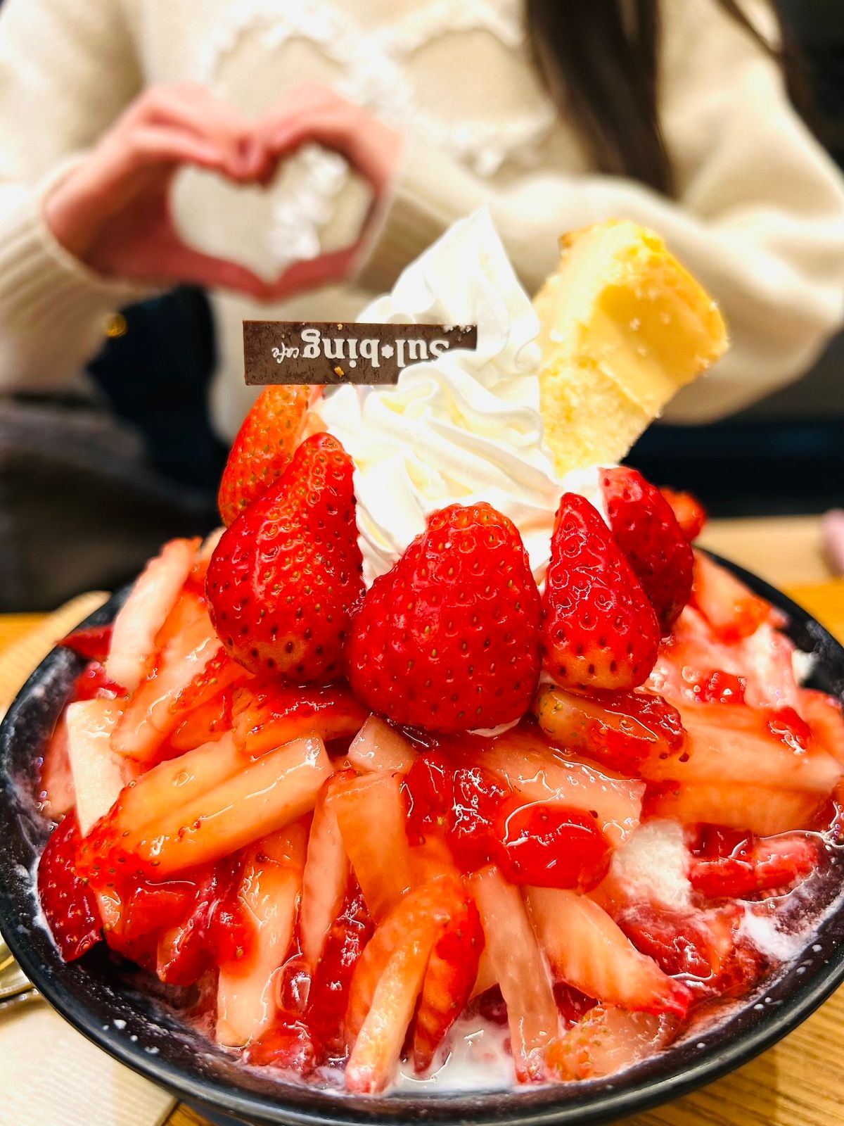 きあらの大好きないちごが沢山のったかき氷🍓ふわふわで、いちごもたっぷり💕上にのってる