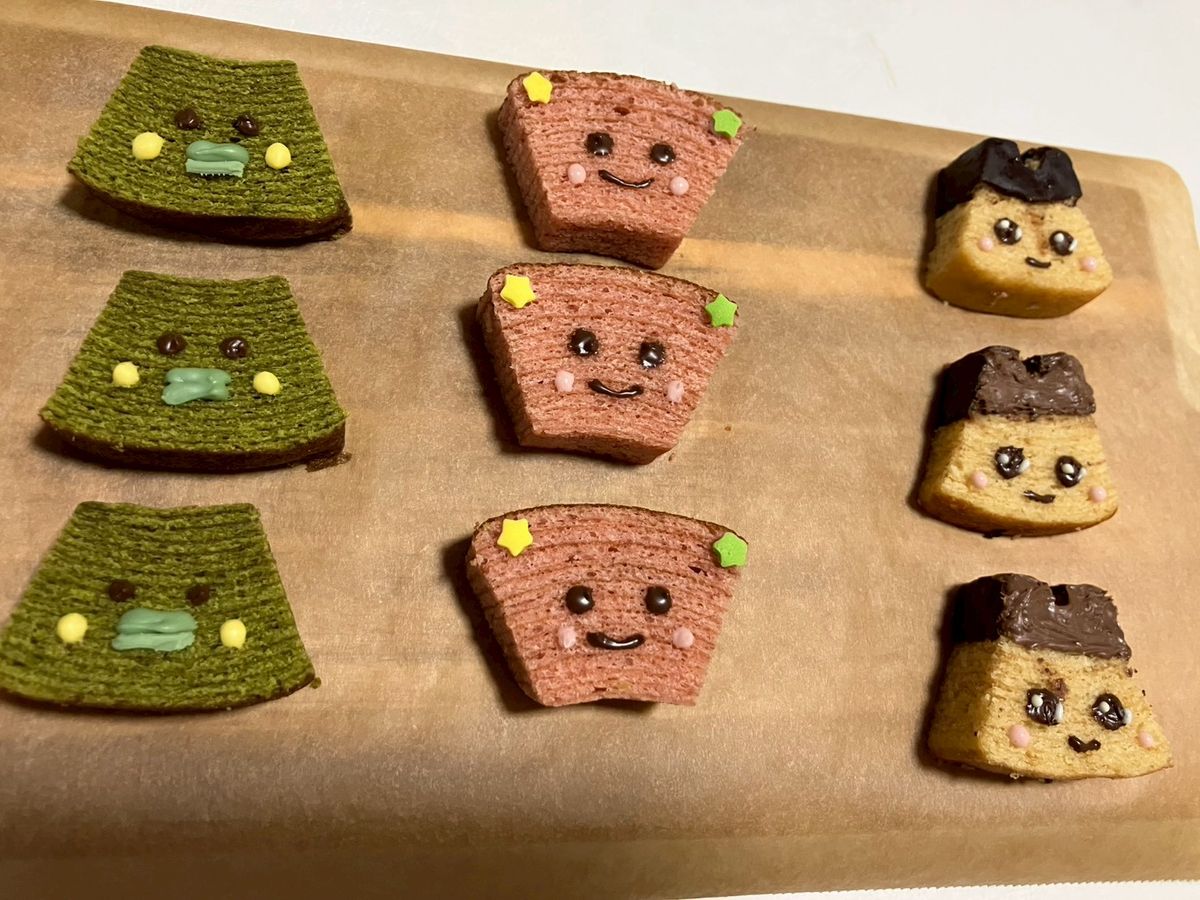 無印良品のバームクーヘンで、まめっち💛ふらわっち🩷くちぱっち💚
