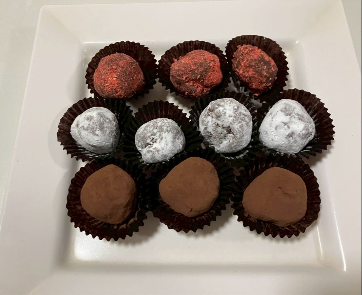 トリュフも作ったよ♡丸めるのが最初下手すぎでガクガクになっちゃった💦でも慣れたら綺麗な丸が作れたよ❣️
