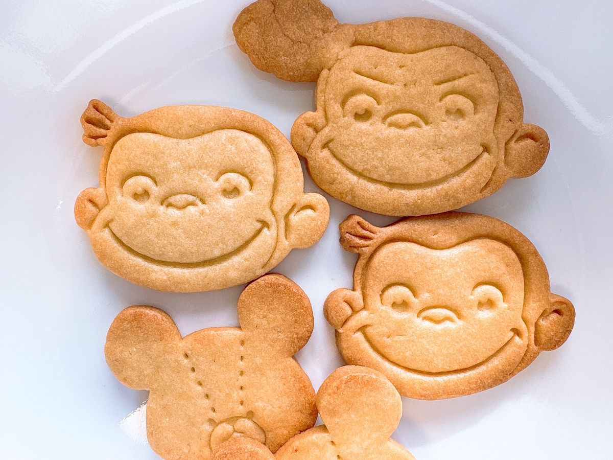クッキーはおさるのジョージカフェでゲットしたクッキー型で作ったら、めっちゃかわいくできて大満足~💖😍ちょいワルなジョージ(笑)😎かわいいでしょ🐒🎵