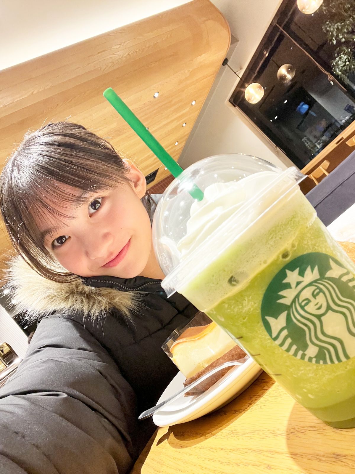 これは最近のお気に入りのスタバの抹茶クリームフラペチーノ!ノンファットミルクにするとスッキリ飲みやすいから、みんなも飲んでみてね!