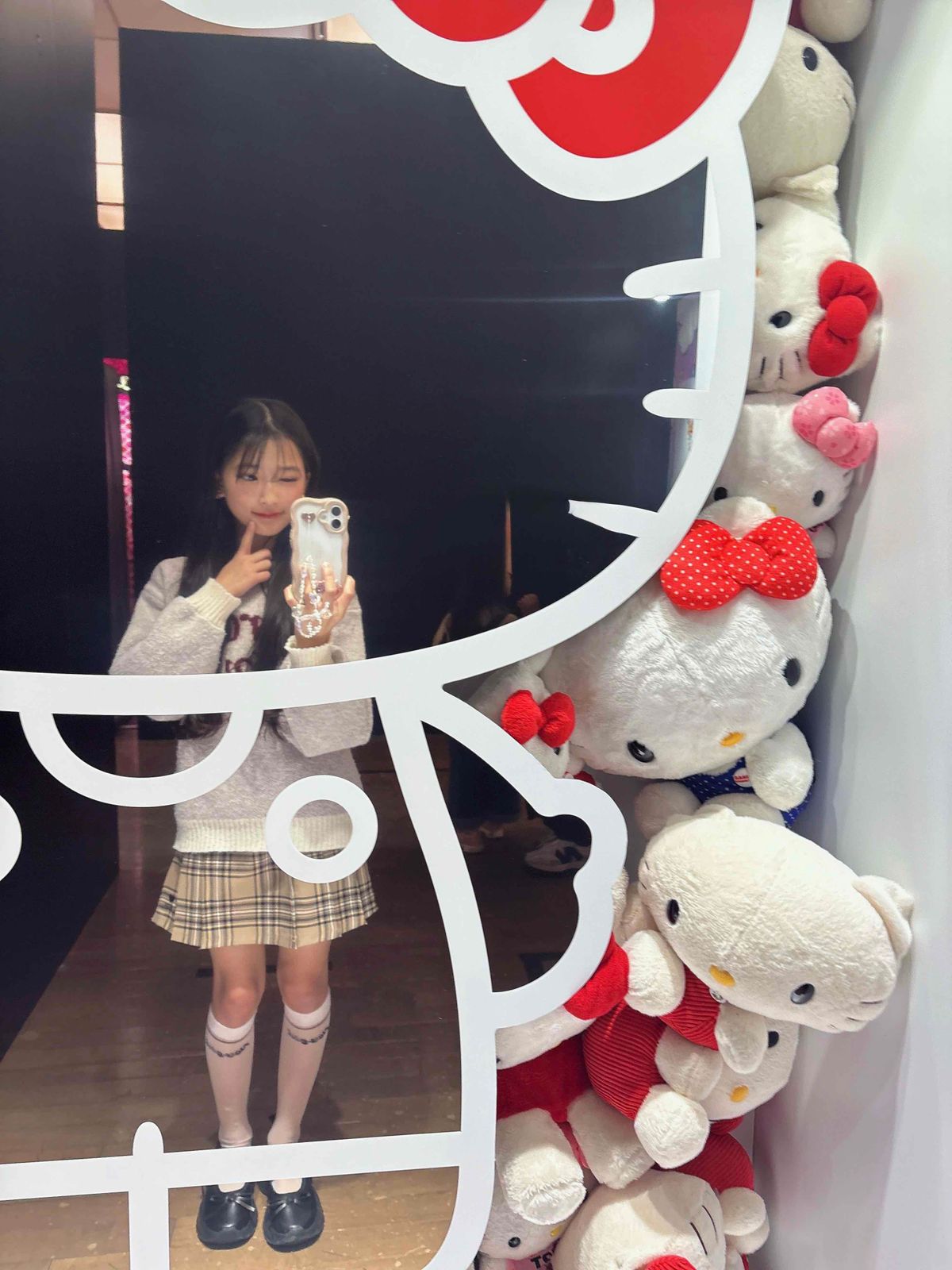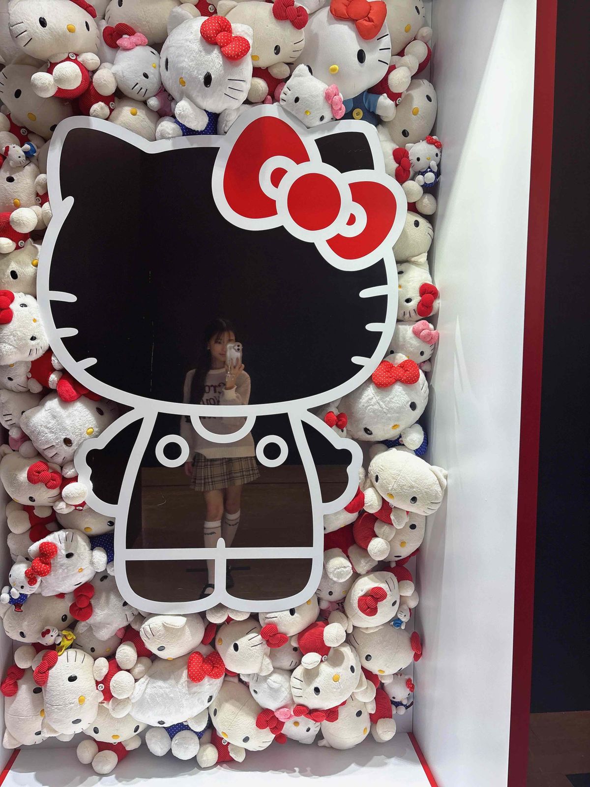 キティちゃんの形の鏡の周りに、キティちゃんお人形がたくさん敷き詰められてるのー💕もう可愛すぎたし、写真映えもするから何枚も写真撮っちゃった🤭