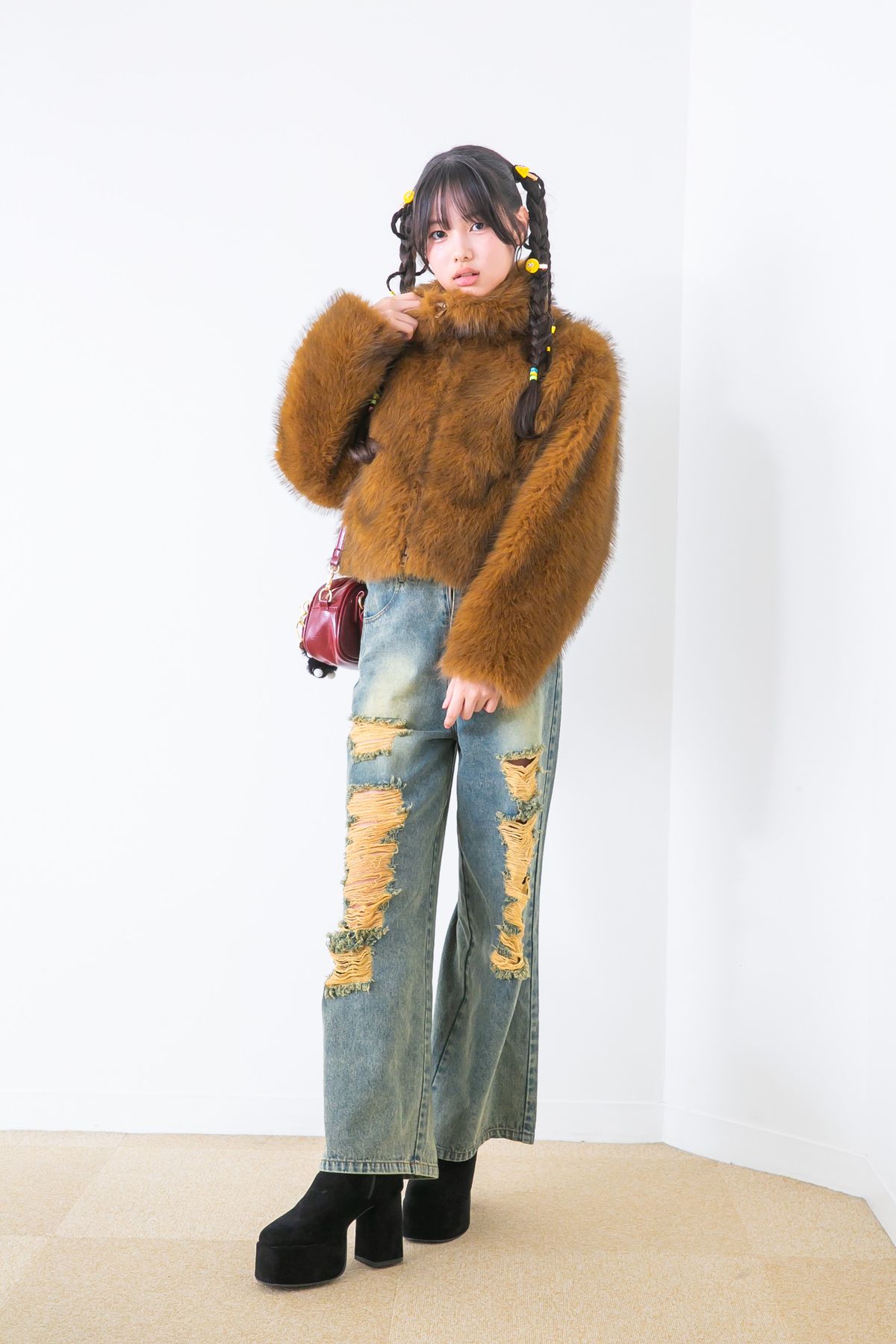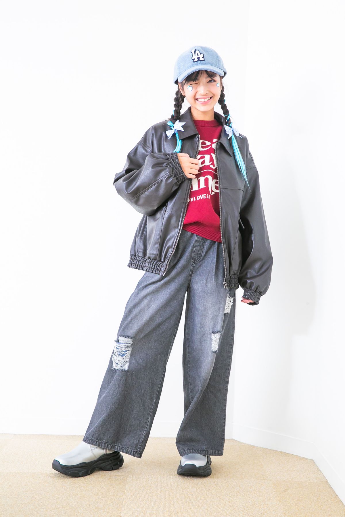 大人っぽいコーデにくま耳ぼうしが若干ういてるかも。おしい!