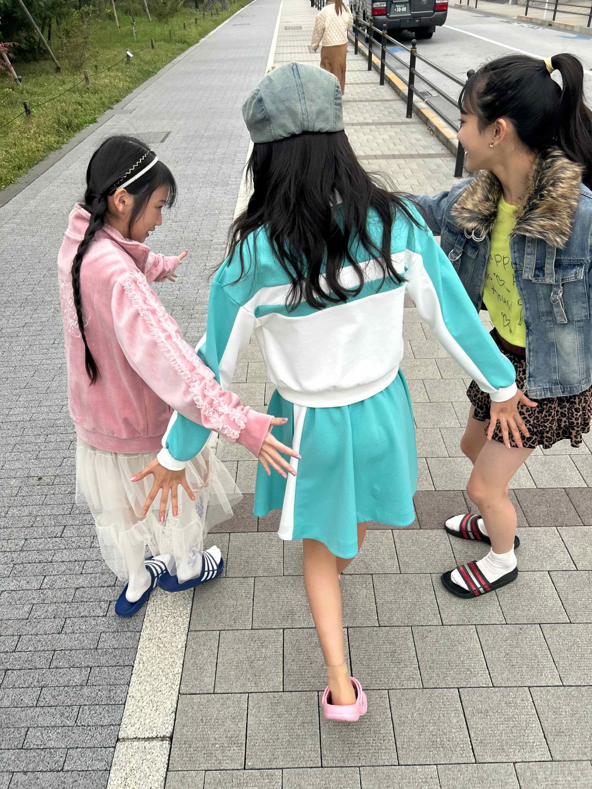 3人での撮影を終えたミオ、ちひな、もも。