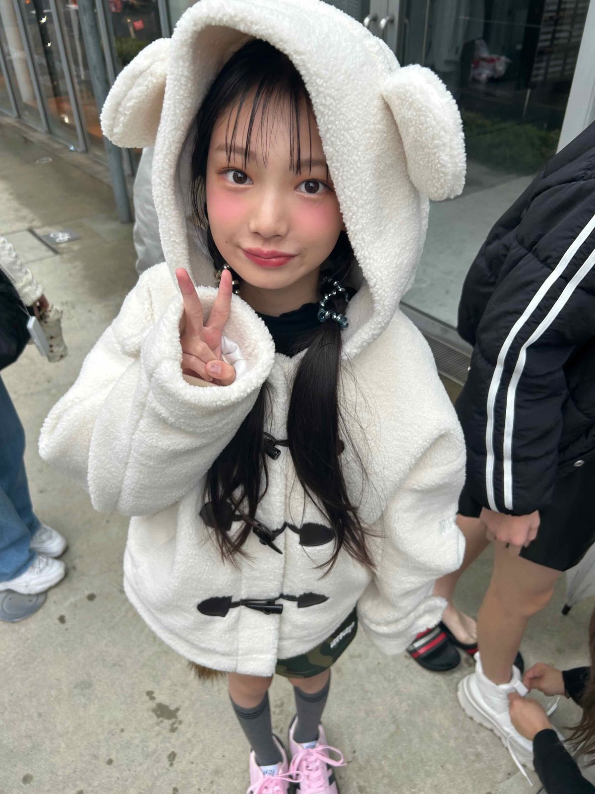 こちらは耳付きフードをかぶったもも! このモコモコ感がプードルっぽい☆