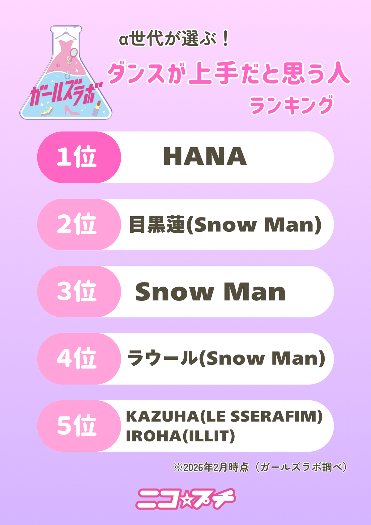 HANAやSnow Manのような日本人グループから、LE SSERAFIMやILLITのようなKPOPグループのメンバーもランクイン! SnowManはメンバーもグループも名前が入っていたよ。