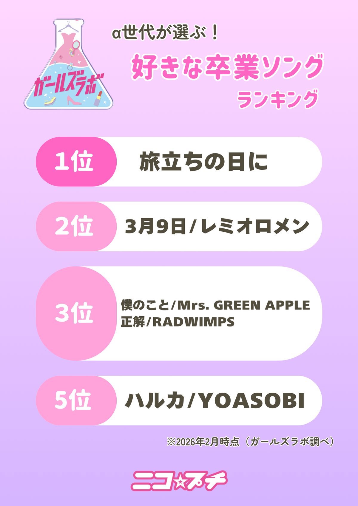 「好きな卒業ソング」ランキング!