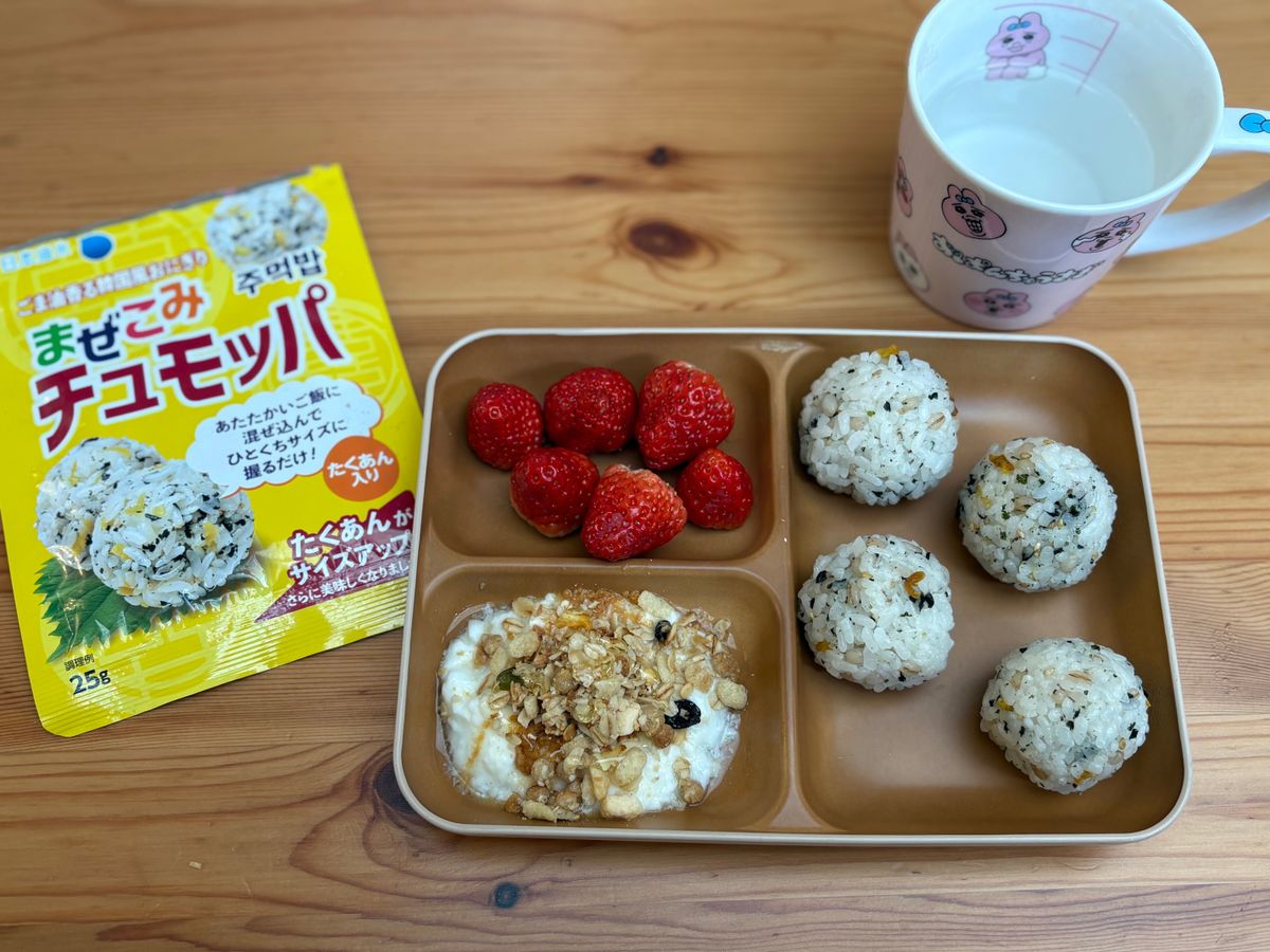 メニュー:チュモッパ、ヨーグルト、いちご、白湯