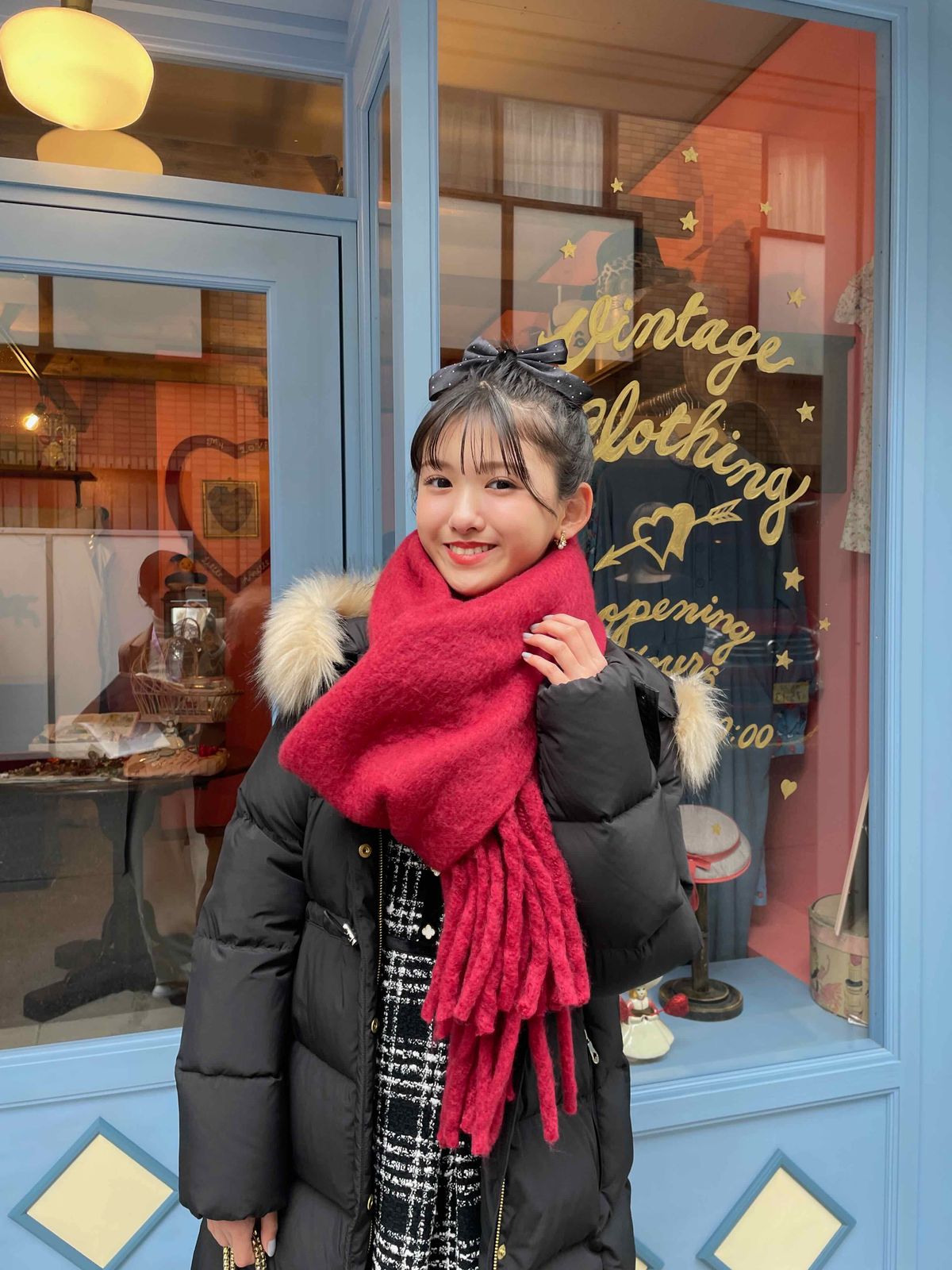 大きなふわふわマフラーが似合ってるりむ♡ みんなはマフラーをどんなふうに巻いてる?