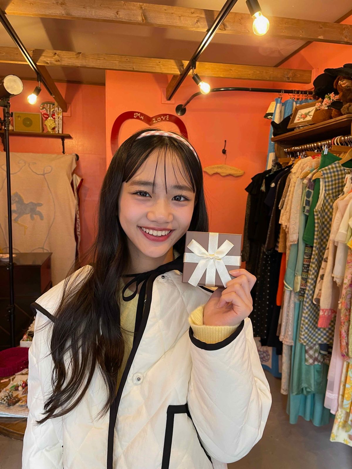 プレゼントボックスを持ってにっこりする、ちひな。もうすぐホワイトデーだけど、みんなは何かする派? しない派?