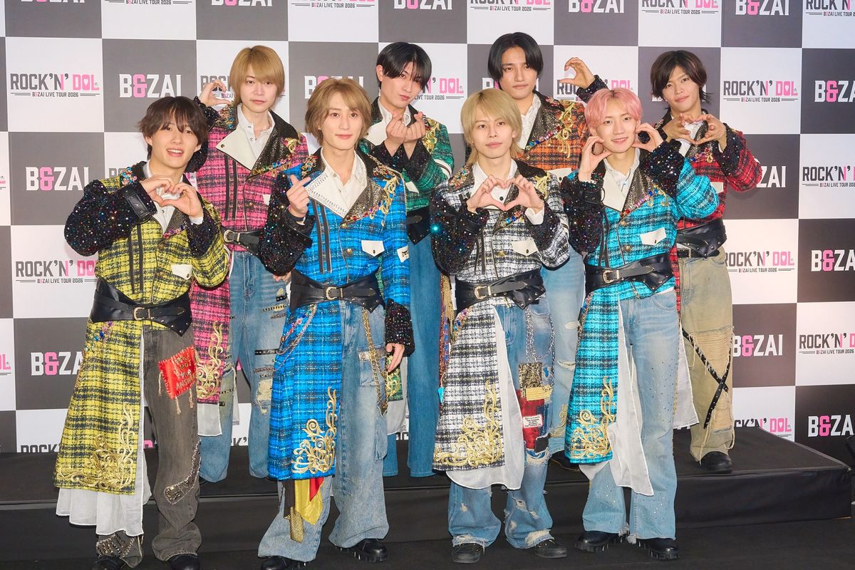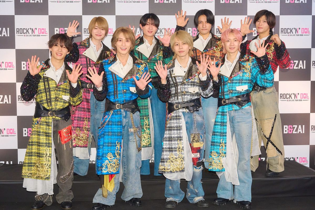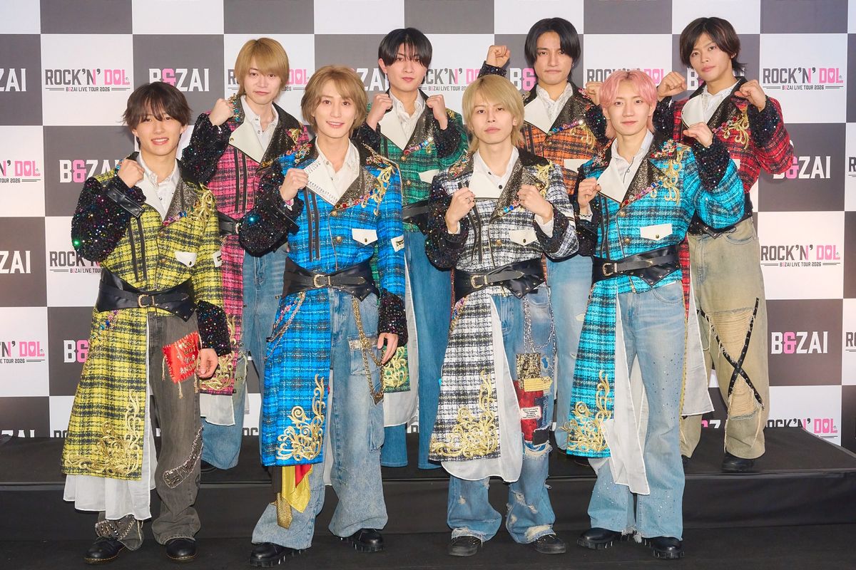 なんとこの日は、アンコールで『B&ZAI LIVE TOUR 2026 -ROCK’N’DOL- in 日本武道館』の決定をステージ上で、サプライズ発表! 橋本くんと稲葉くんが涙で目をうるませたり、メンバー全員で肩を組み合って大喜びだったのでした。バンドを武器とするB&ZAIにとって、バンドの聖地(せいち)である日本武道館はあこがれのステージ。夢が叶った8人がライブの後に行われた記者会見でもよろこびのコメントをしていたよ。