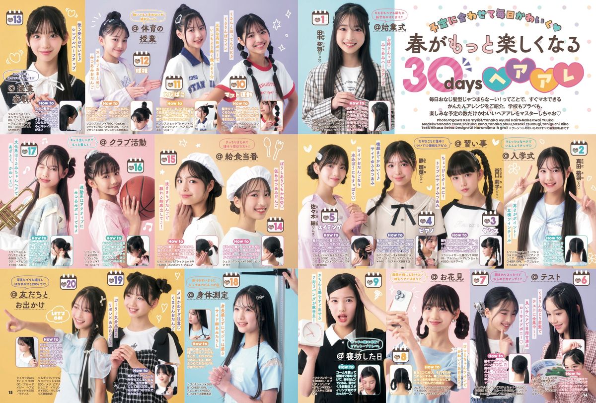 入学式や運動会、クラブ活動の日に寝坊した日まで!? 色々なシチュエーションに合わせたヘアアレを、なんと30日分も用意しました♪ 全部かんたんだからテンションに合わせてマネしてみてね☆