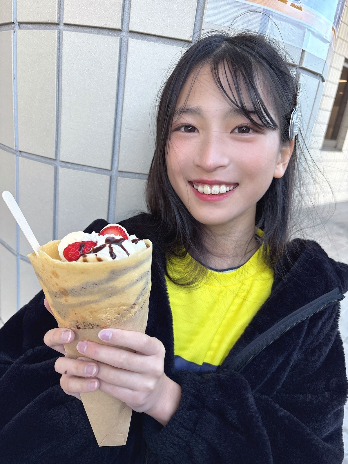 大好きなバレー観戦の時に食べたクレープがめちゃくちゃおいしかったー😋何と!!賞味期限5分!エスプーマ生クリームで、口にいれたらすぐ溶けちゃう!