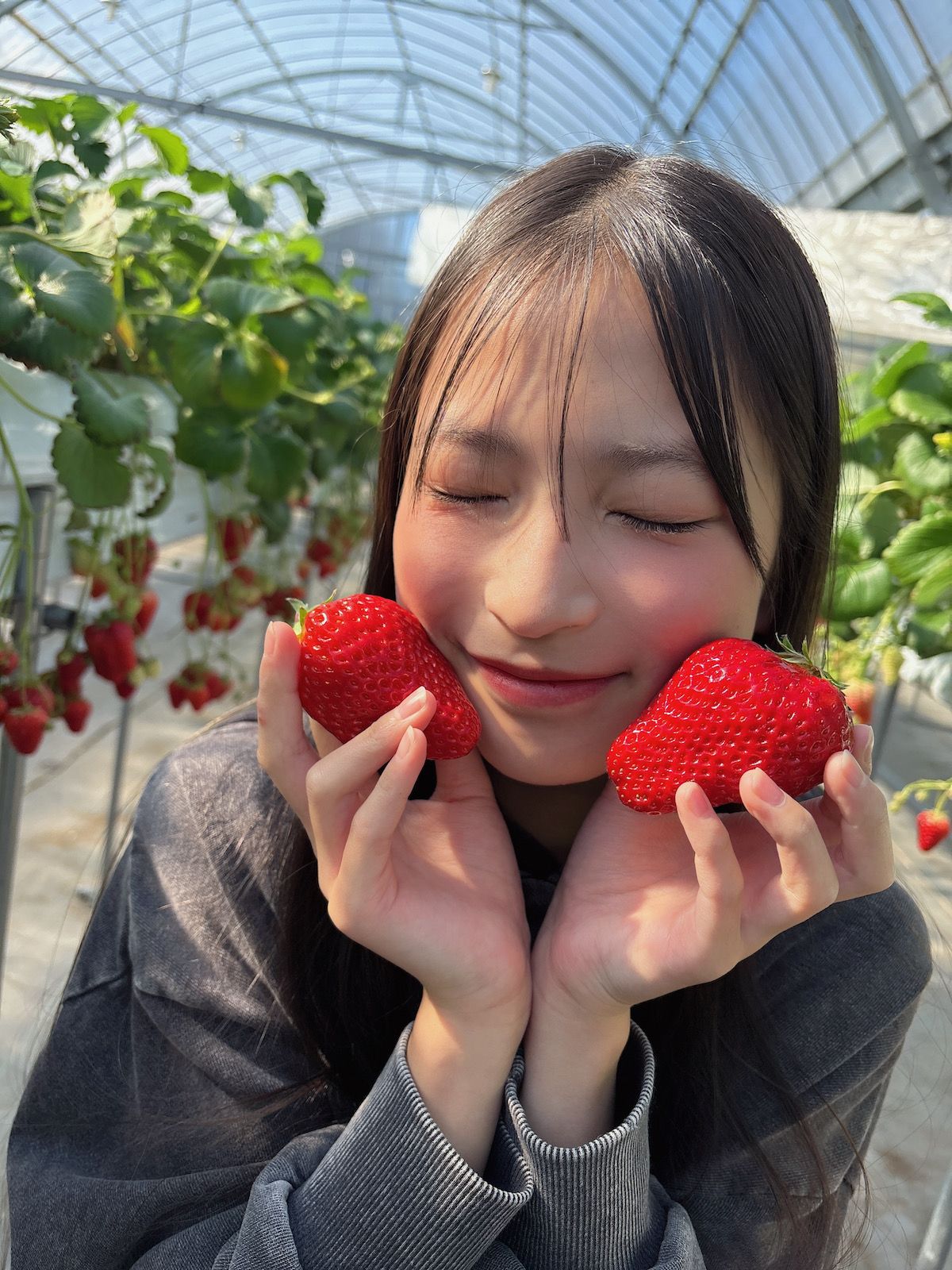 シュウはいちごがだーい好き❤️毎年必ずいちご狩りは行くよ!大きくて甘くておいしかったー😊