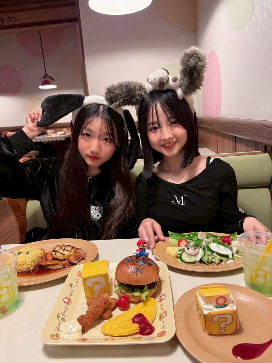 夜ご飯はキノピオ・カフェ🍄❤️💚全部が可愛くて入るだけでテンション⤴⤴いっぱい遊べて楽しかった💕 年パスでこれからたくさんユニバ行くよ🌎🤍