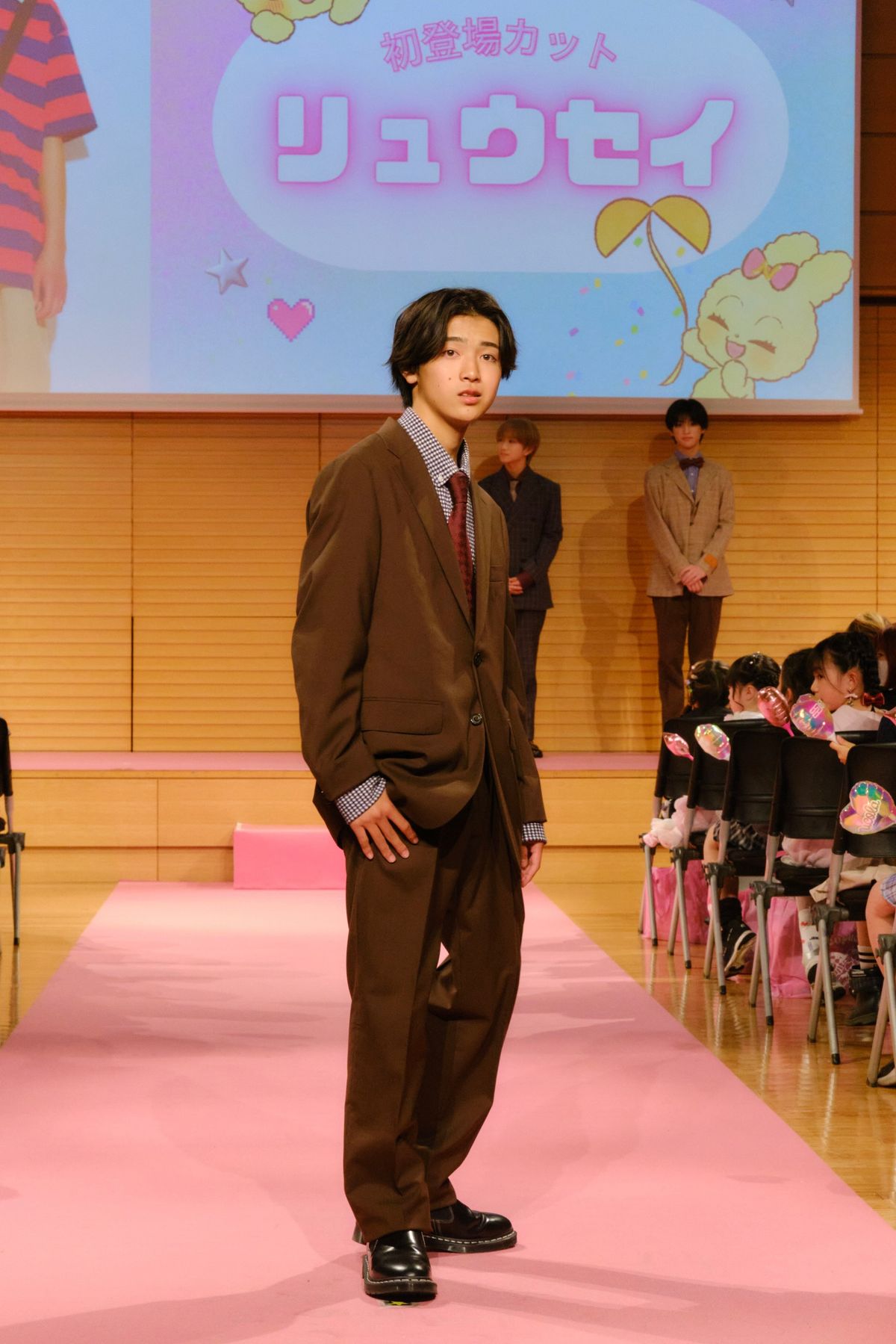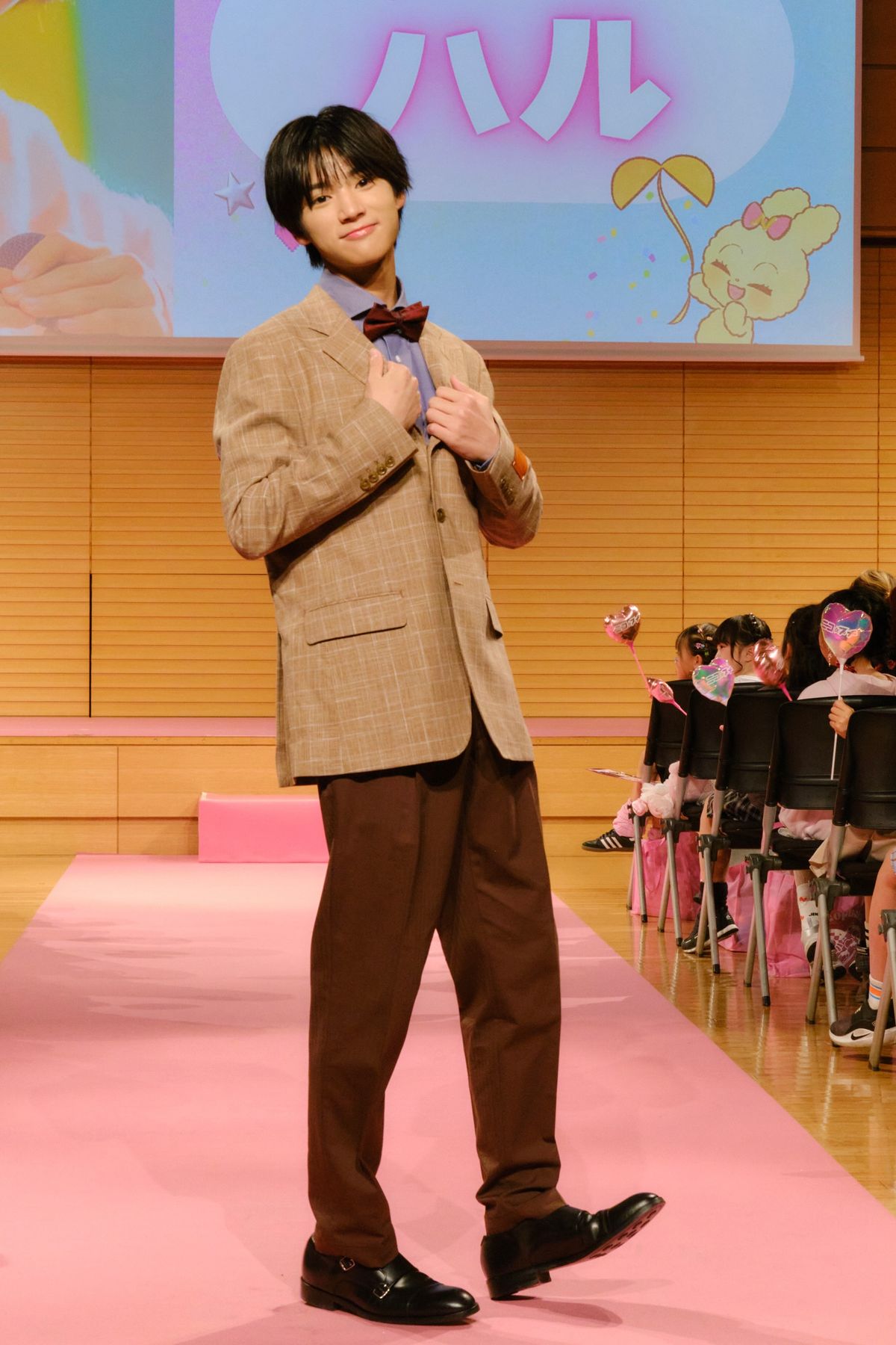 キャメル×ブラウンのスーツ姿に、やさしいスマイルが映える〜! 赤い蝶ネクタイで、ハルのおちゃめな一面を表現。
