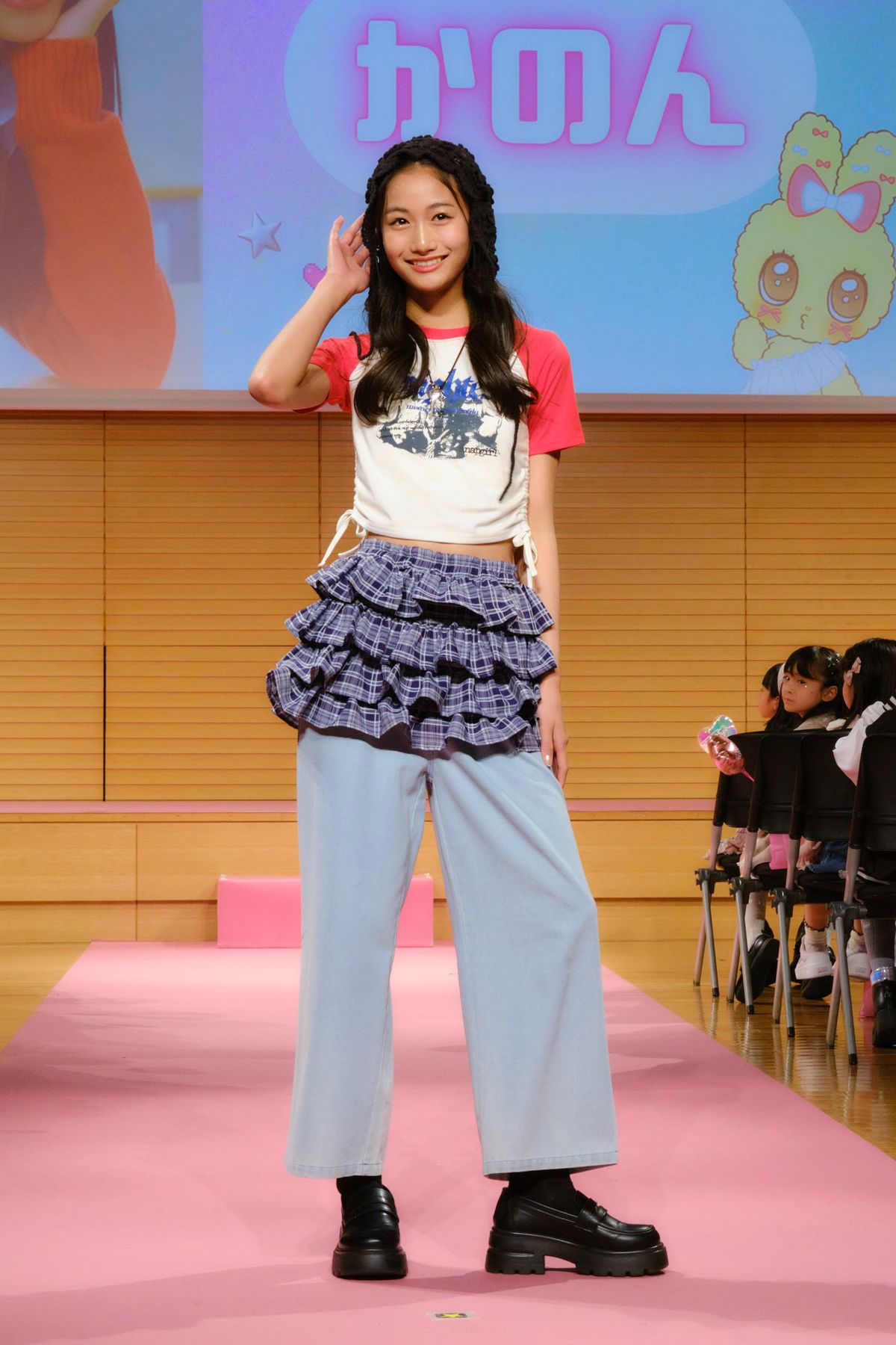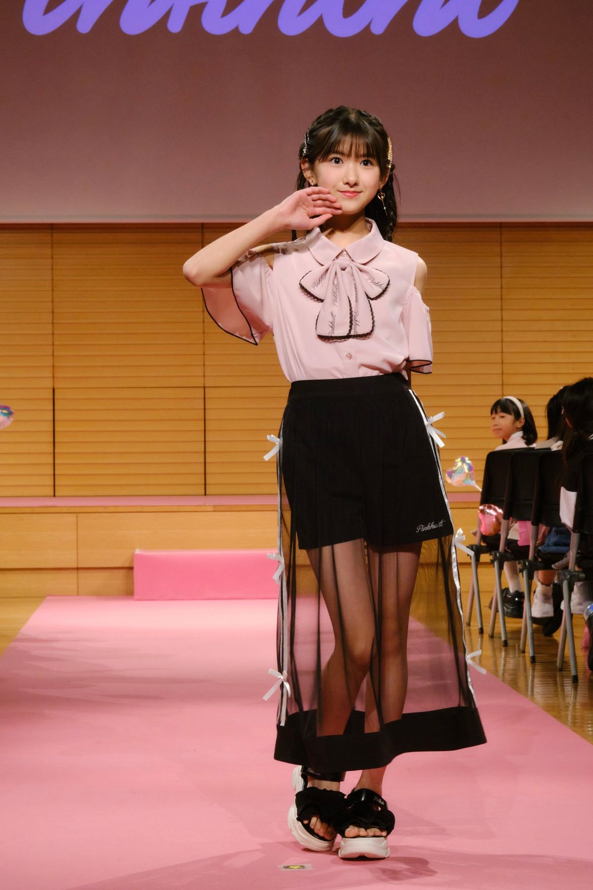 「ピンクハント」のブランドステージではプチ㋲のりむ&ちひなが登場! 2人と一緒に、1部&2部合わせて9名の読者モデルがランウェイを歩いたよ!