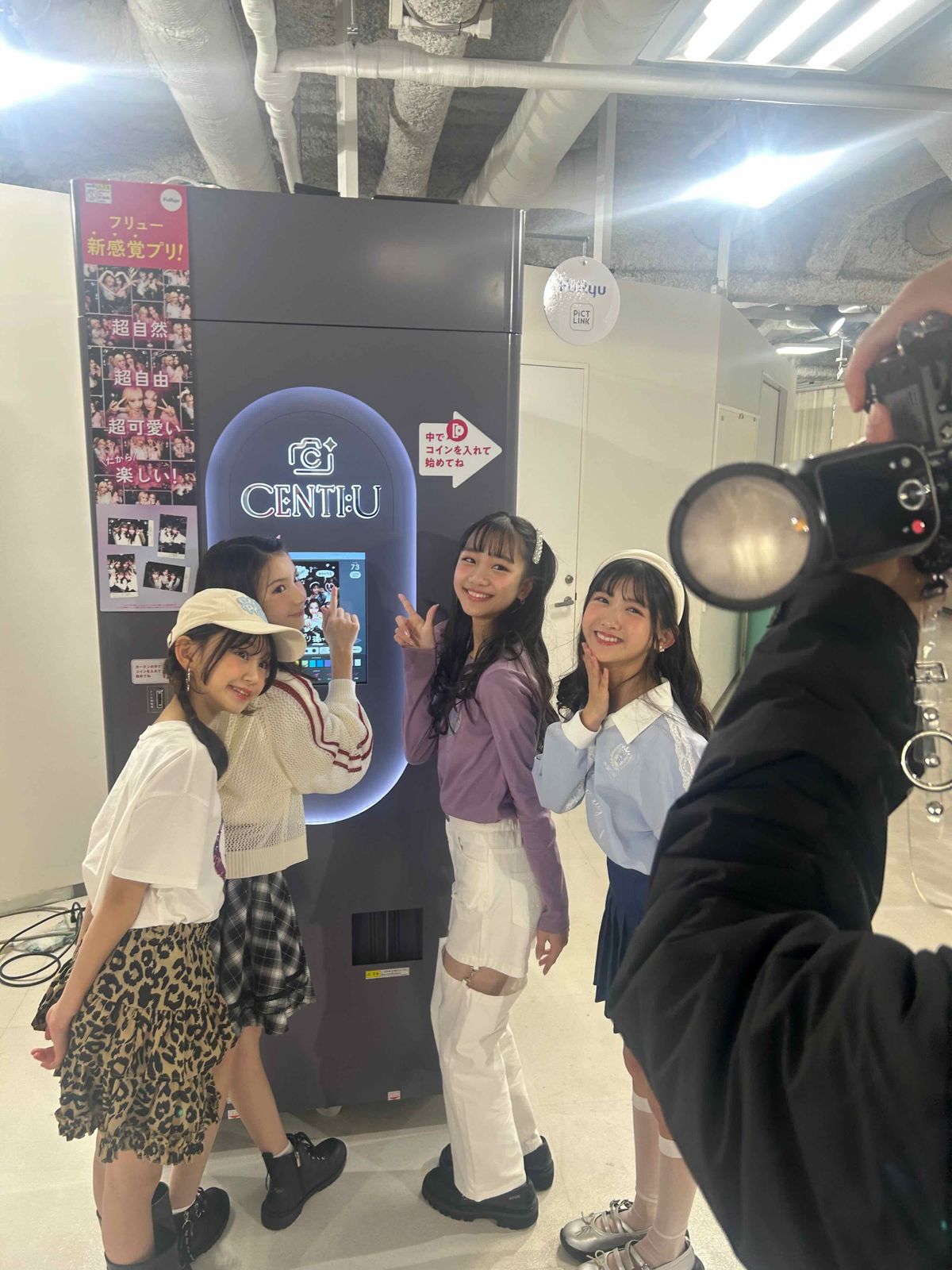話題の「センチユー」を体験させてもらった4人。撮影ブースがミラー状になっているとあって、撮影前からワクワク♪