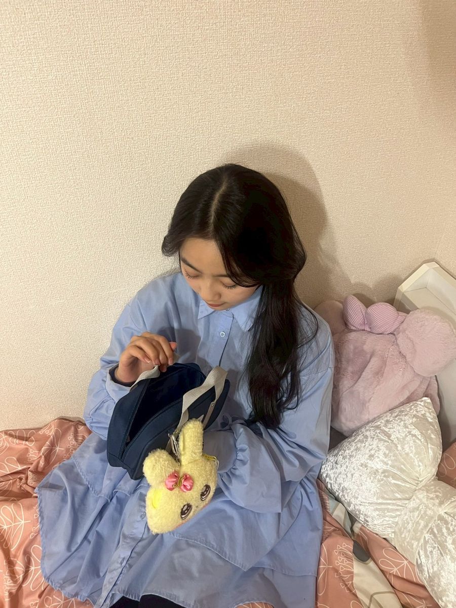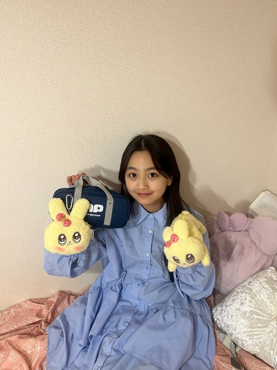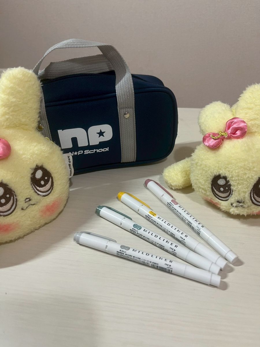 ニコ☆プチスクールのスクバ風のペンポーチと、ニコらびぬいペンポーチです🐰💛
