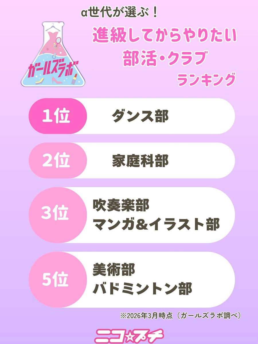 1位はダンス部! 文化祭などでステージに上がる姿にあこがれるよね☆ 家庭科部や吹奏楽部など文化部も人気🎶