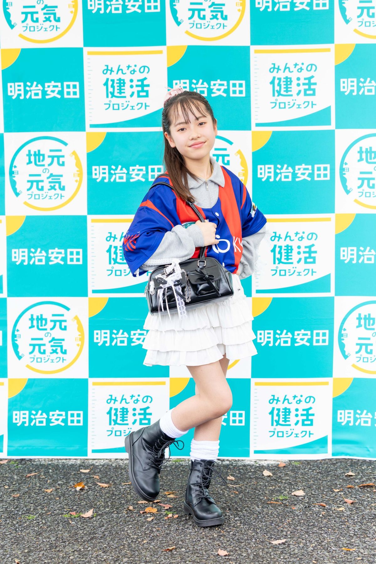 ユニフォームの色を引き立てる、白のフリルスカートに注目♡ アクセサリは赤を使ってとういつ感を意識したよ。ゆいみんちゃん(中2)
