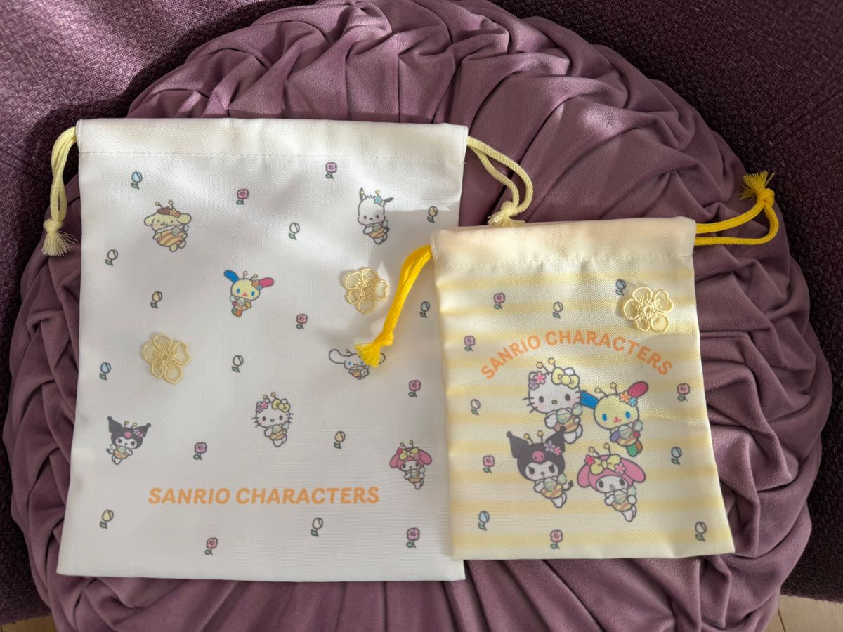 巾着はたくさん使うからいくつあっても便利✨この春はサンリオのハチさんシリーズをメインで使う予定だよ🐝
