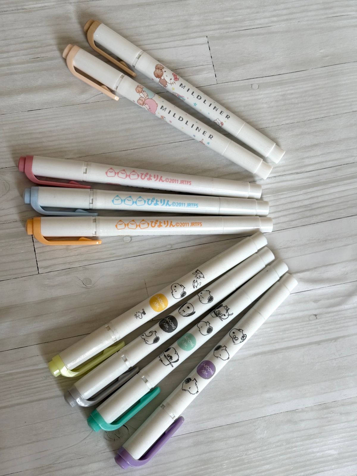 ラインマーカーの中でも、シュウはマイルドライナーが使いやすくておすすめ!!色の種類も多くて、ぜつみょうなパステルカラーが大好き🌷