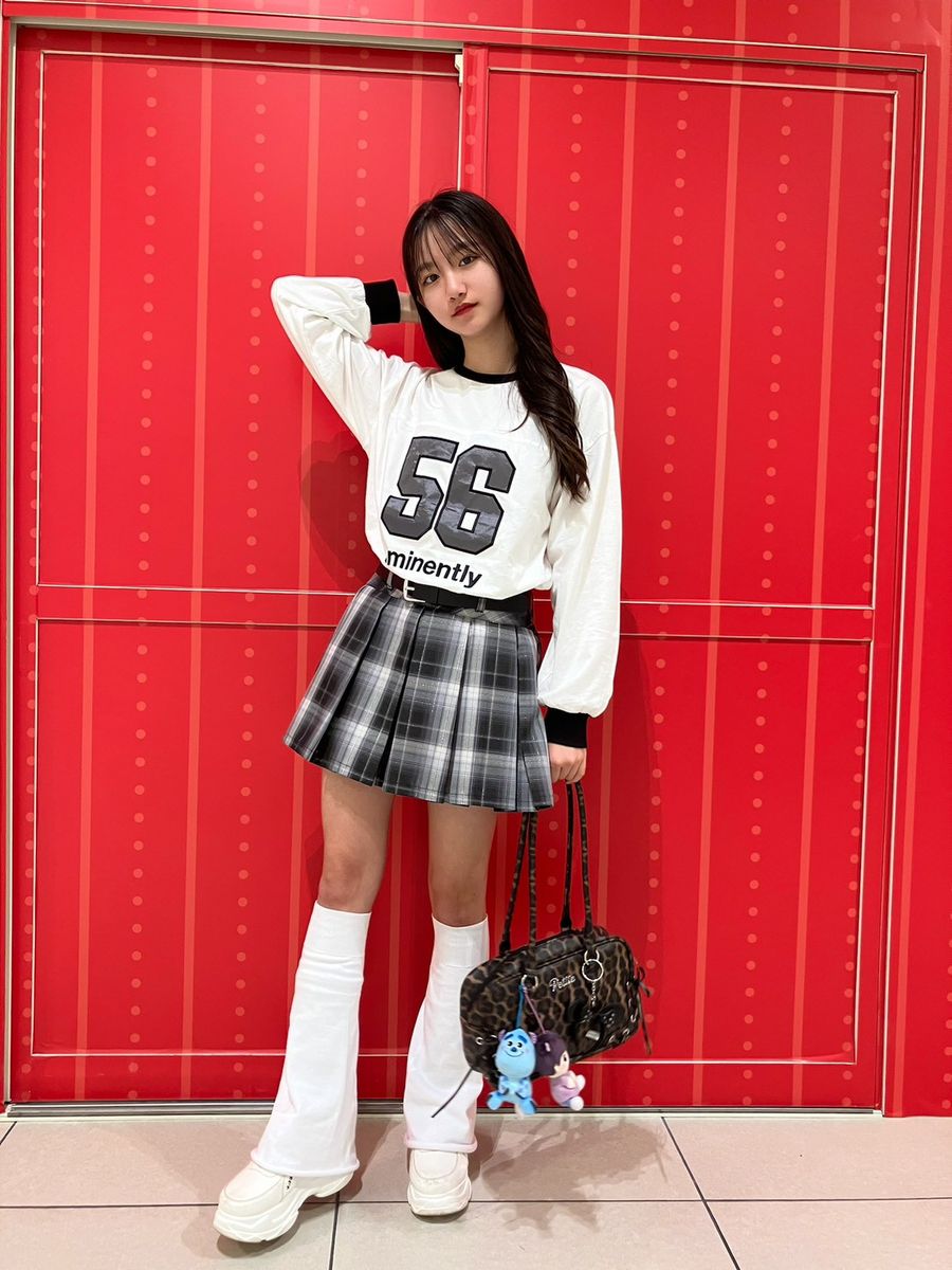 チェックスカートとレッグカバーを合わせてギャルコーデ❣️この春はトレンドのチェックやドットを取り入れたいです💗