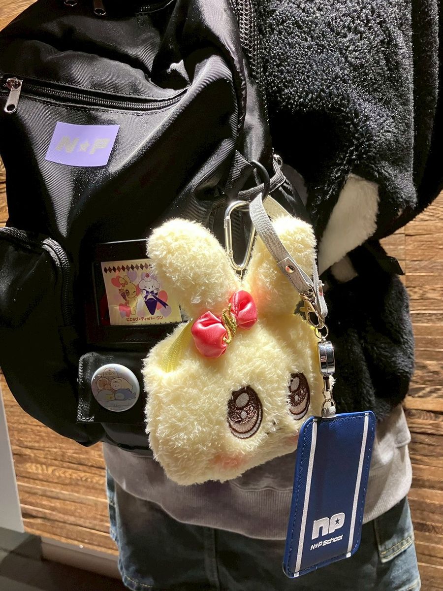 パスケースはニコ☆プチスクールのリュックにつけてレッスンに行ってます🚃かわいいステッカーはにこらび×ディッパー・ワンだよ🐰🐶
