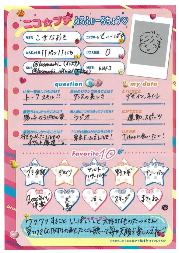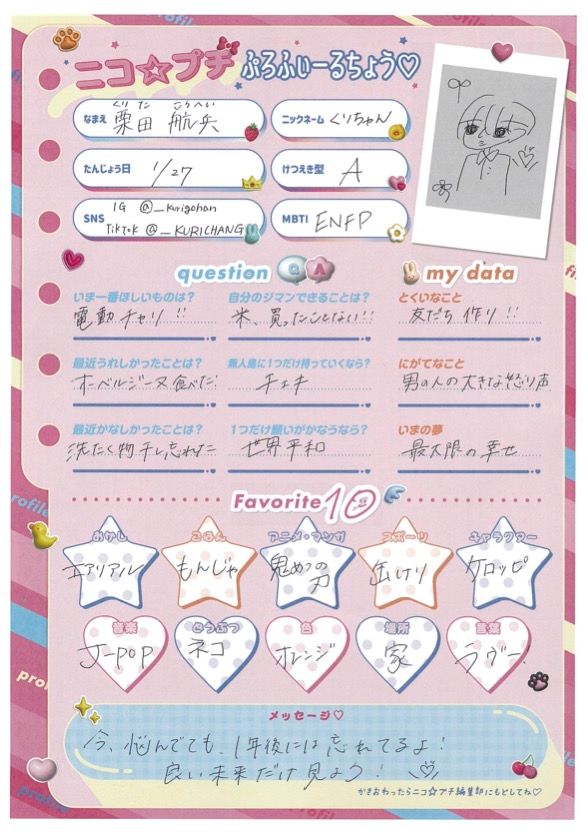 <プロフィール帳>![]()