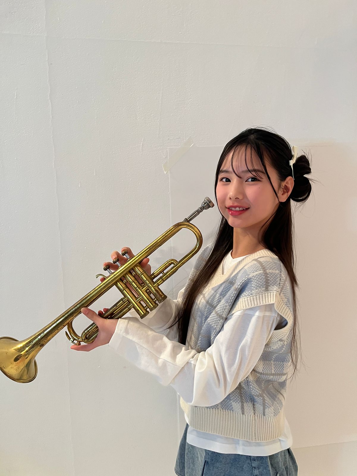 トランペットをもつトワ。持ち方がちょっぴりぎこちないけどそれもかわいい♡