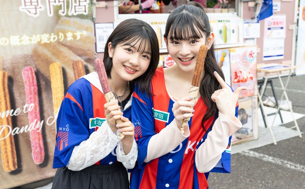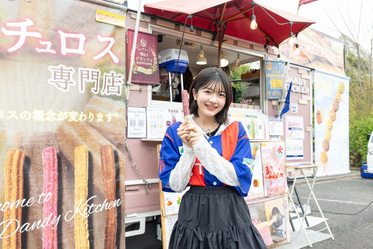 スタジアム内では、ここでしか食べられないグルメやキッチンカーもたくさん出店されていたよ! ミオ&ヒナちゃんは味の種類がほうふなチュロスをご指名。他にもワッフルやドリンクなどの映えスイーツもたくさんあって、プチ㋲たちも目移りしていました♡