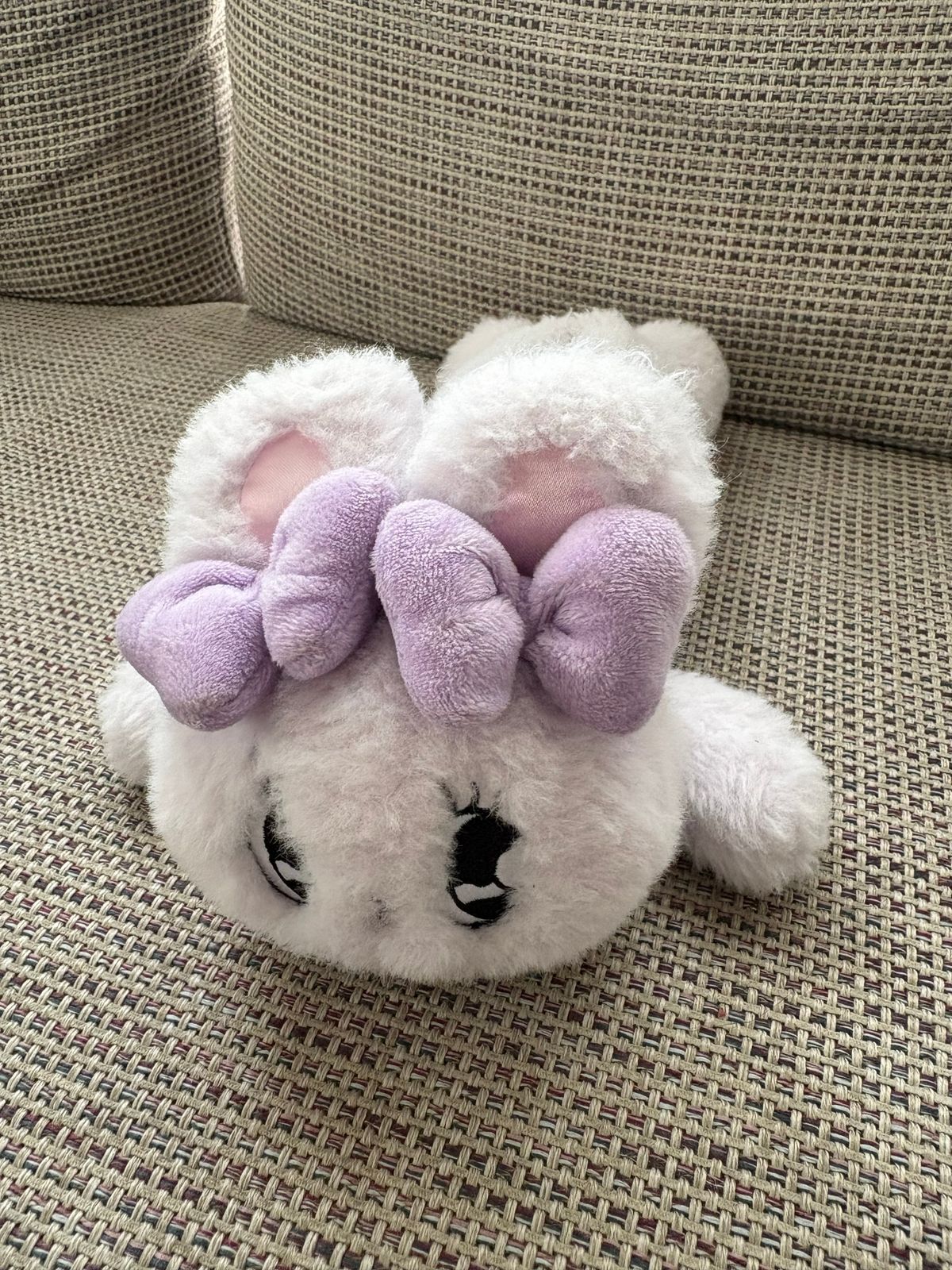 もこもこしていて、紫のリボンがかわいい!3種類あるんだけど、全種類集めたかった🥺