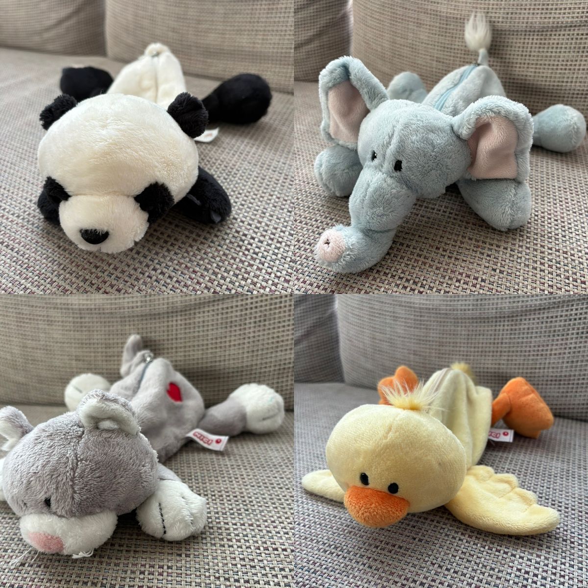 パンダ、ゾウ、ねこ、ひよこを持っています🫶🏻どれもふわふわで持ってたらみんなに「かわいい!」って言われるよ🎀