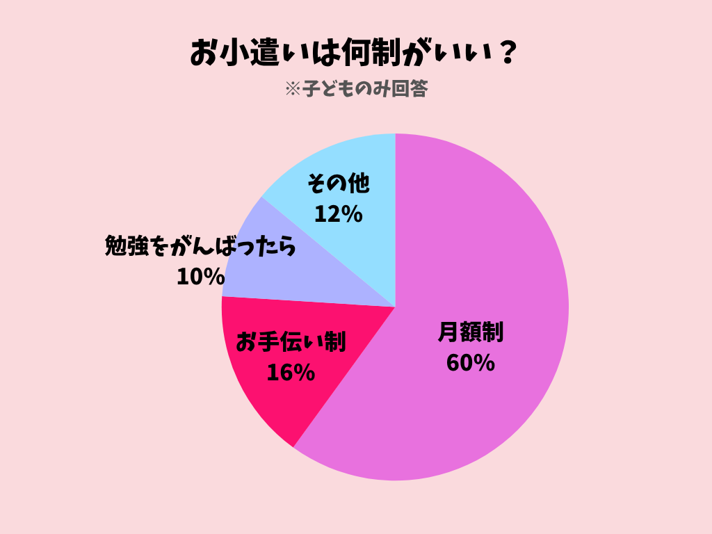 子どもの意見では月額制を希望する声が多数派に。安定してもらえる安心感が理由として考えられます。その他では、必要なときに申告という柔軟なスタイルを望む声も見られました。