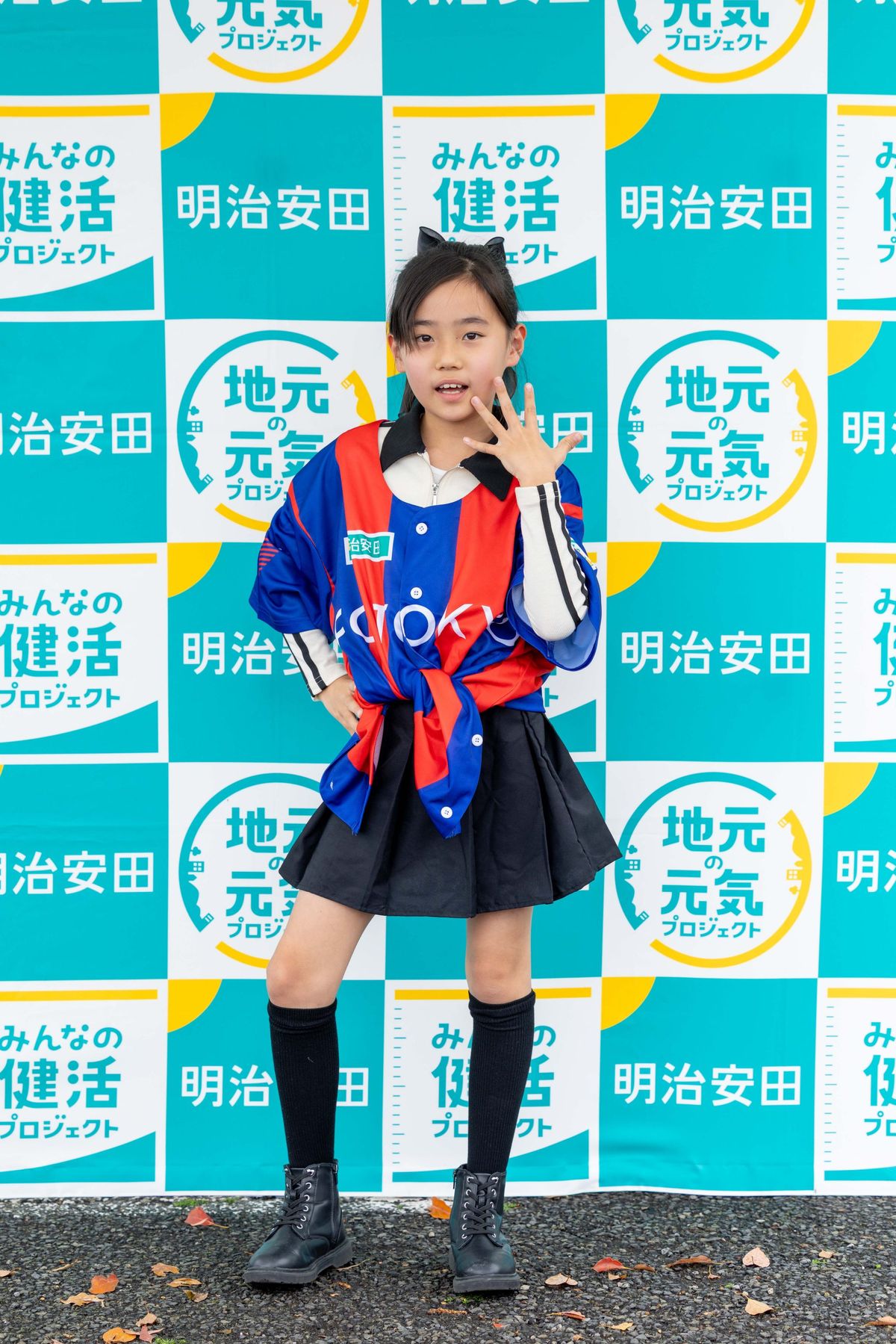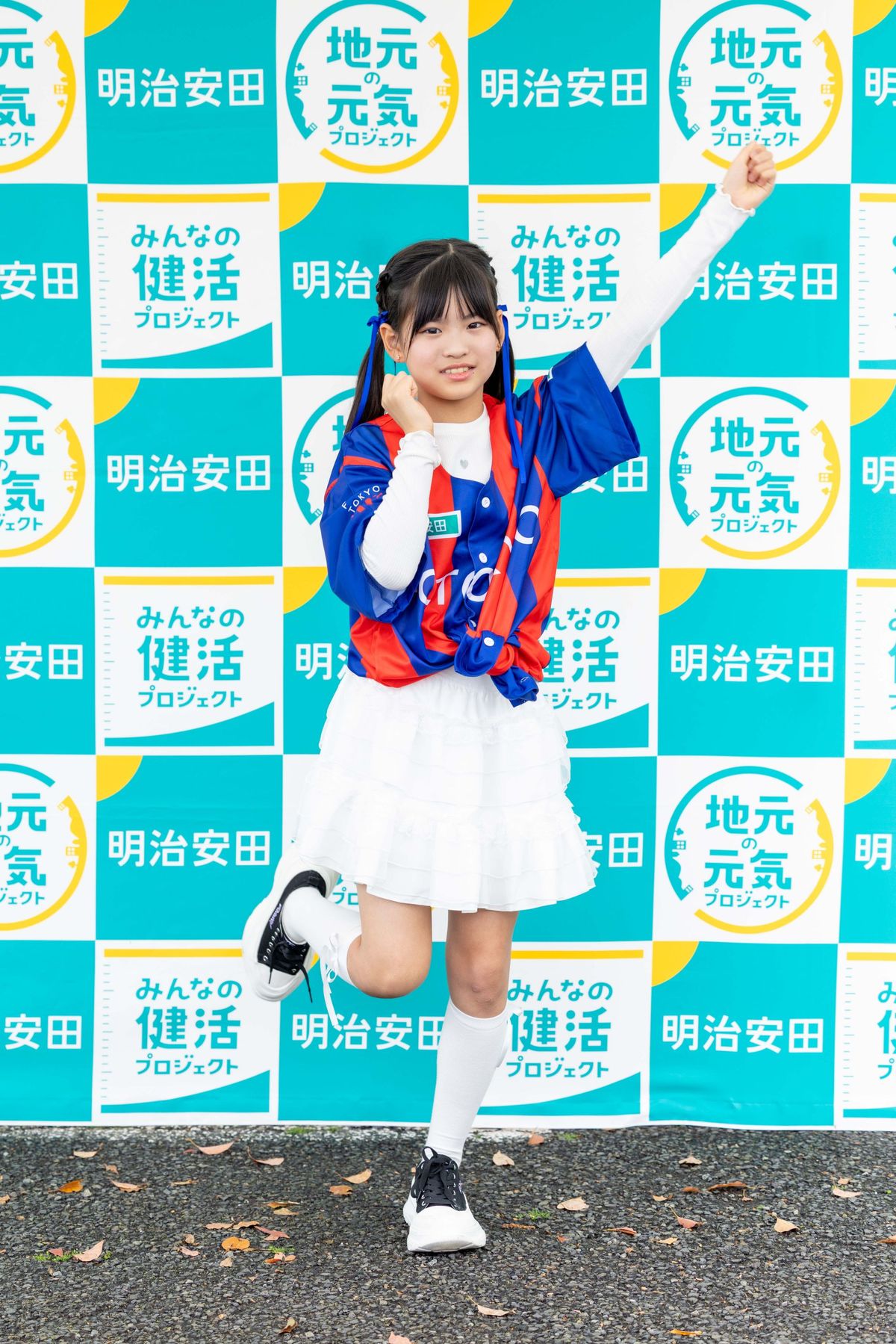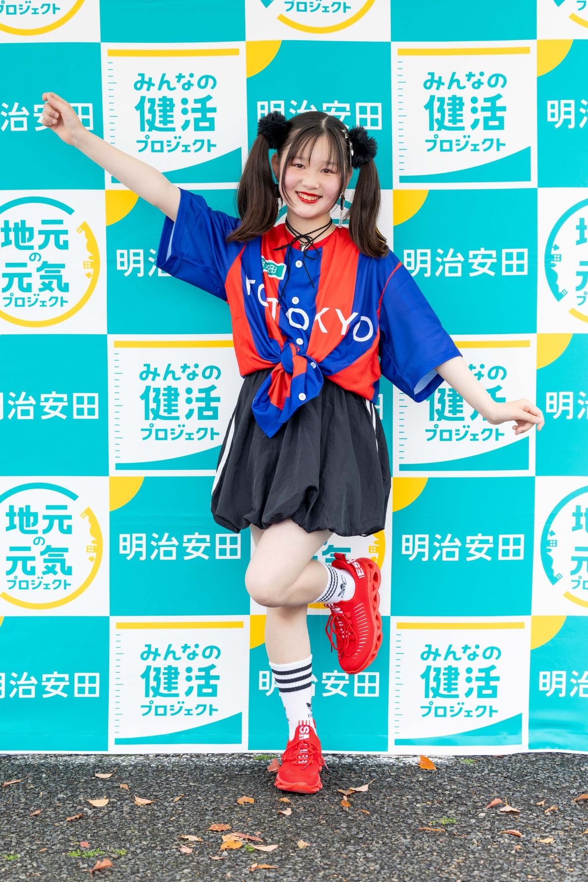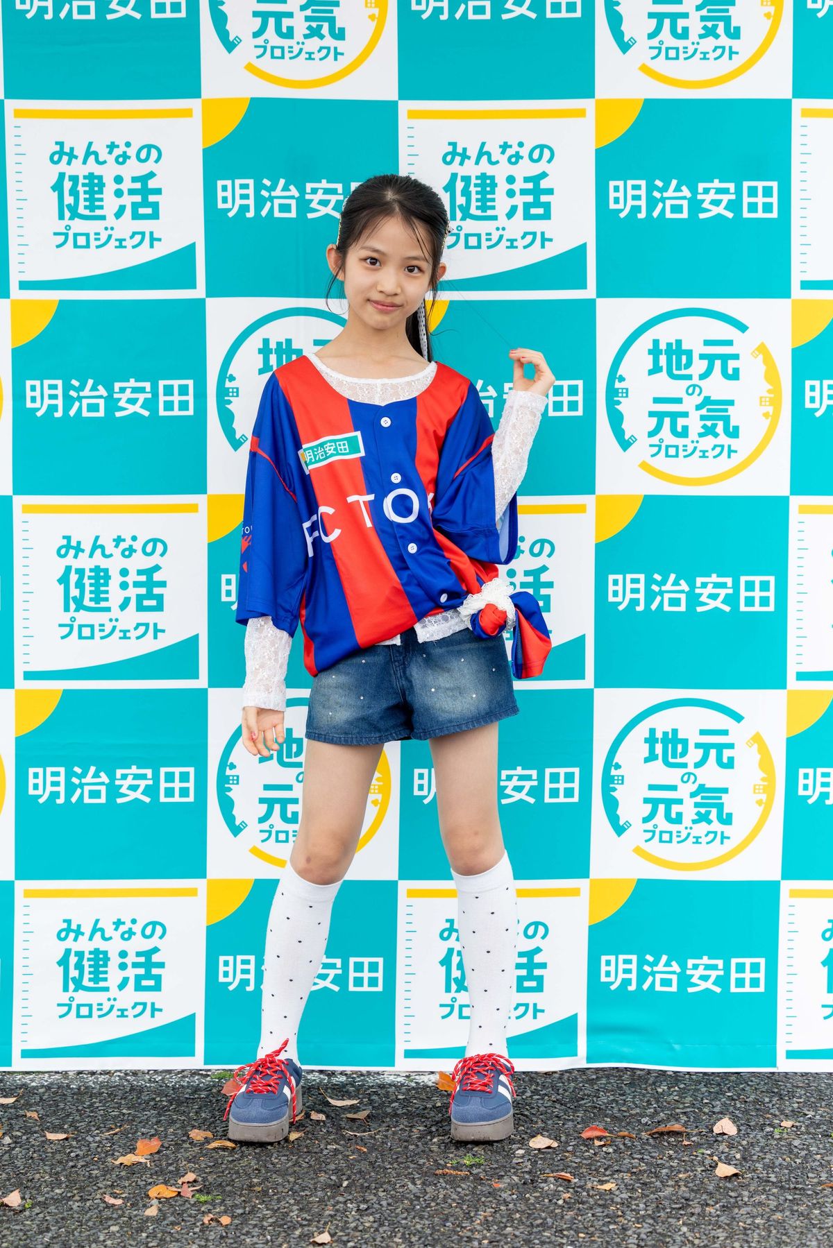 ライン入りバルーンスカートはユニフォームとの相性ばつぐん! スタジアムでも目立つように高めツインで元気をアピールするよ☆ナノちゃん(小5)