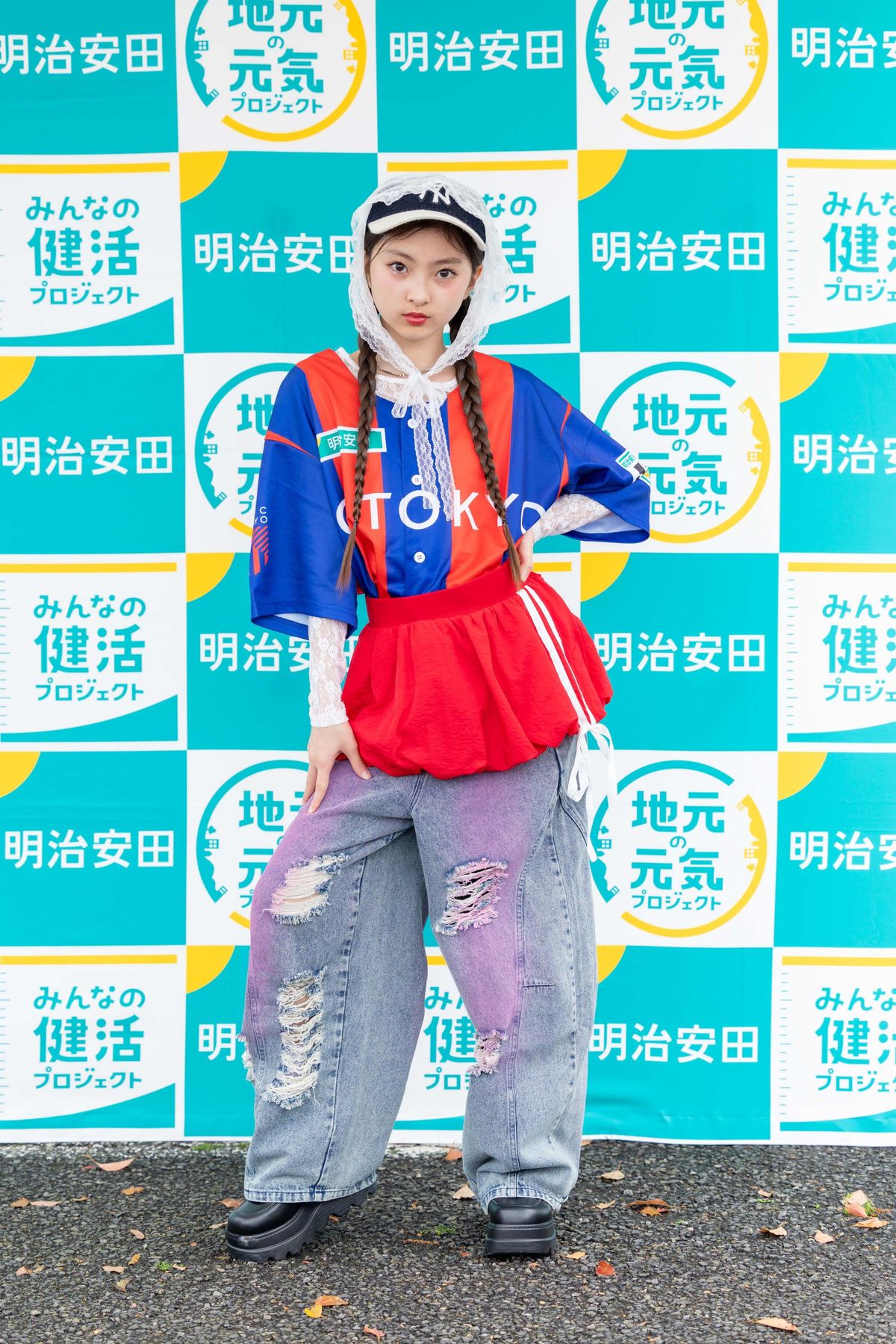 インパクトのあるアイテムを組み合わせた"NEOスポガーリー"が超イケてる☆ ユニフォームはすっきりインして、同じ色のバルーンスカートをレイヤード。みーちゃん(小4)